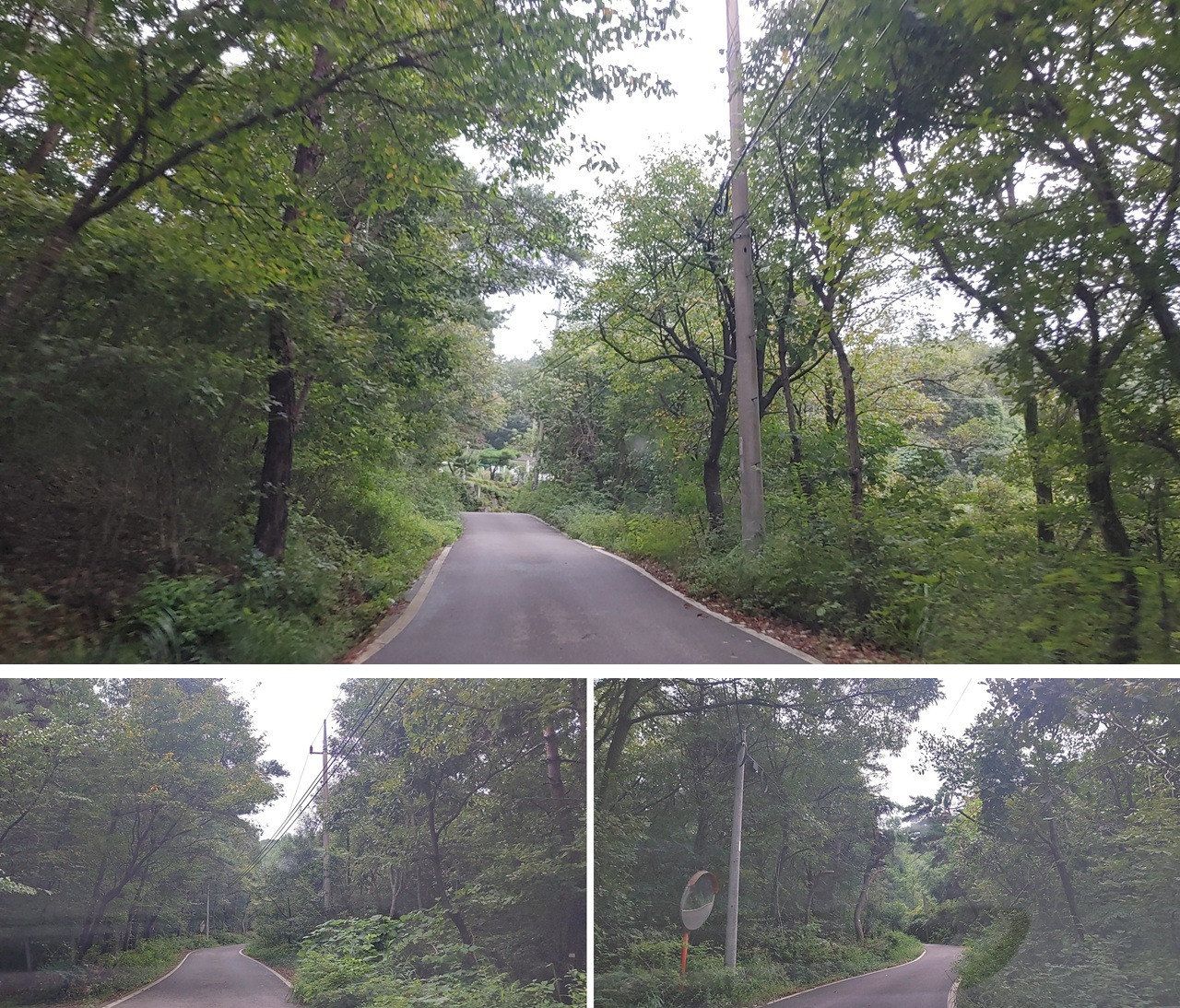 천천히 달려도 가까운 풍경은 빠르게 스치듯 멀어져 갔다. 좀 더 멀리 구불구불 숲길 앞으로 눈길을 보내면, 이 모든 풍경은 서로 비슷한 거리를 두고 우리와 동행하고 있었다. 처음 들어서는 숲길이지만 낯설지 않았다. 우리와 풍경과 숲길 사이로 비워진 간격이 딱 좋아, 몸과 마음이 더 안락했다.