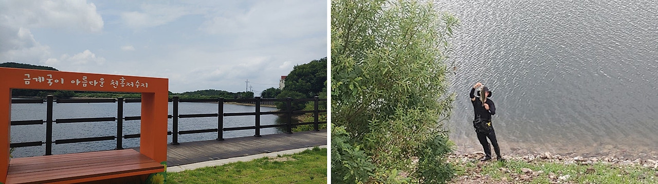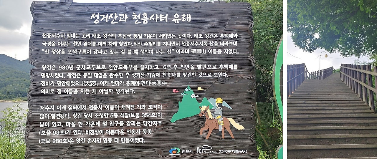 성거산을 품은 천흥저수지 풍경은 병풍에 담긴 산수화처럼 쓱 펼쳐졌다.