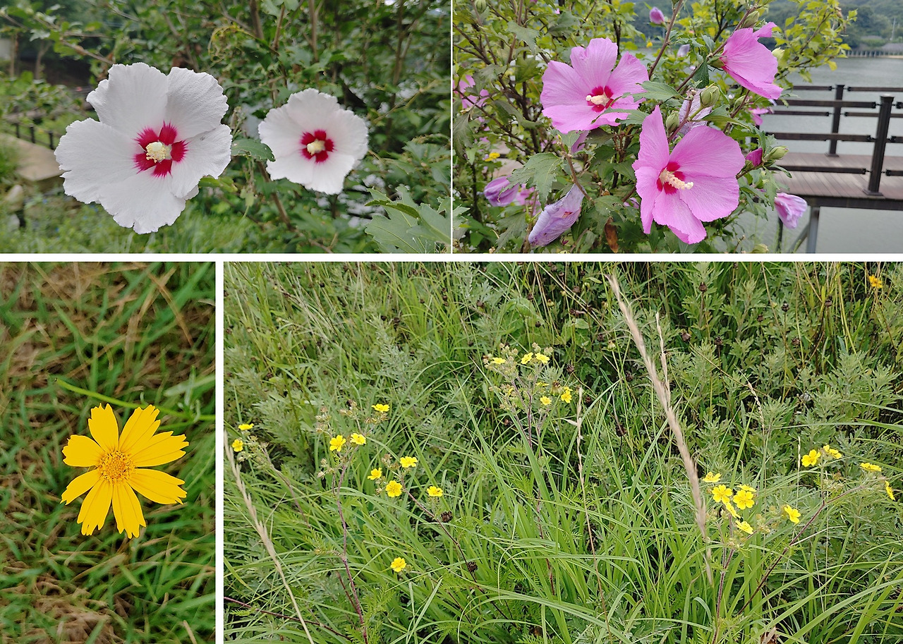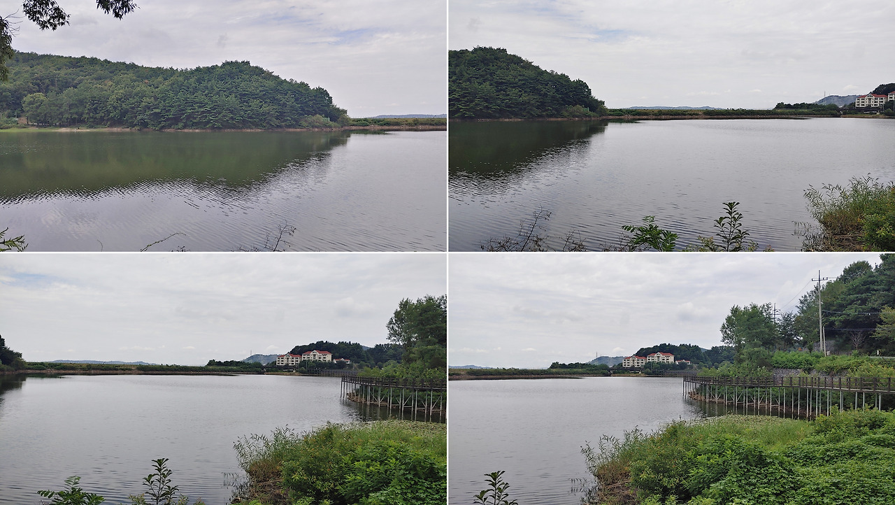일요일(7일) 오전과 오후 사이 즈음, 천흥저수지로 나들이를 갔다. 작년 7월엔 두 번씩이나 들렸던 장소지만, 어느새 14개월의 세월이 흘렀다. 작년에도 금계국이 활짝 핀 6월을 지나쳐 갔던 것이 아쉬웠는데, 올해는 여름이 이별 준비를 마친 9월에야 찾았다. 무거운 회색빛 구름이 햇빛을 막아선 탓인지, 성거산을 품은 천흥저수지의 정적인 풍경은 마치 병풍에 담긴 산수화처럼 쓱 펼쳐졌다. 천흥저수지는 위로는 먹구름을 무겁게 이고, 물속엔 성거산 그림자를 가득 담고, 묵직한 초가을 정취를 우리에게 쓱 들이밀었지만, 산책을 즐기다 보니 곧 후텁지근하고 끈적거리는 더위가 슬며시 목덜미를 감싸기 시작했다. 떠나지 않으려는 여름과 밀고 들어서려는 가을 사이를 넘나들던 미풍은, 저수지 위로 잔물결을 헤집고 살며시 불어왔다. 적막한 주위 풍경을 둘러보니, 어제의 유난스럽던 날씨가 오버랩되기도 했다.