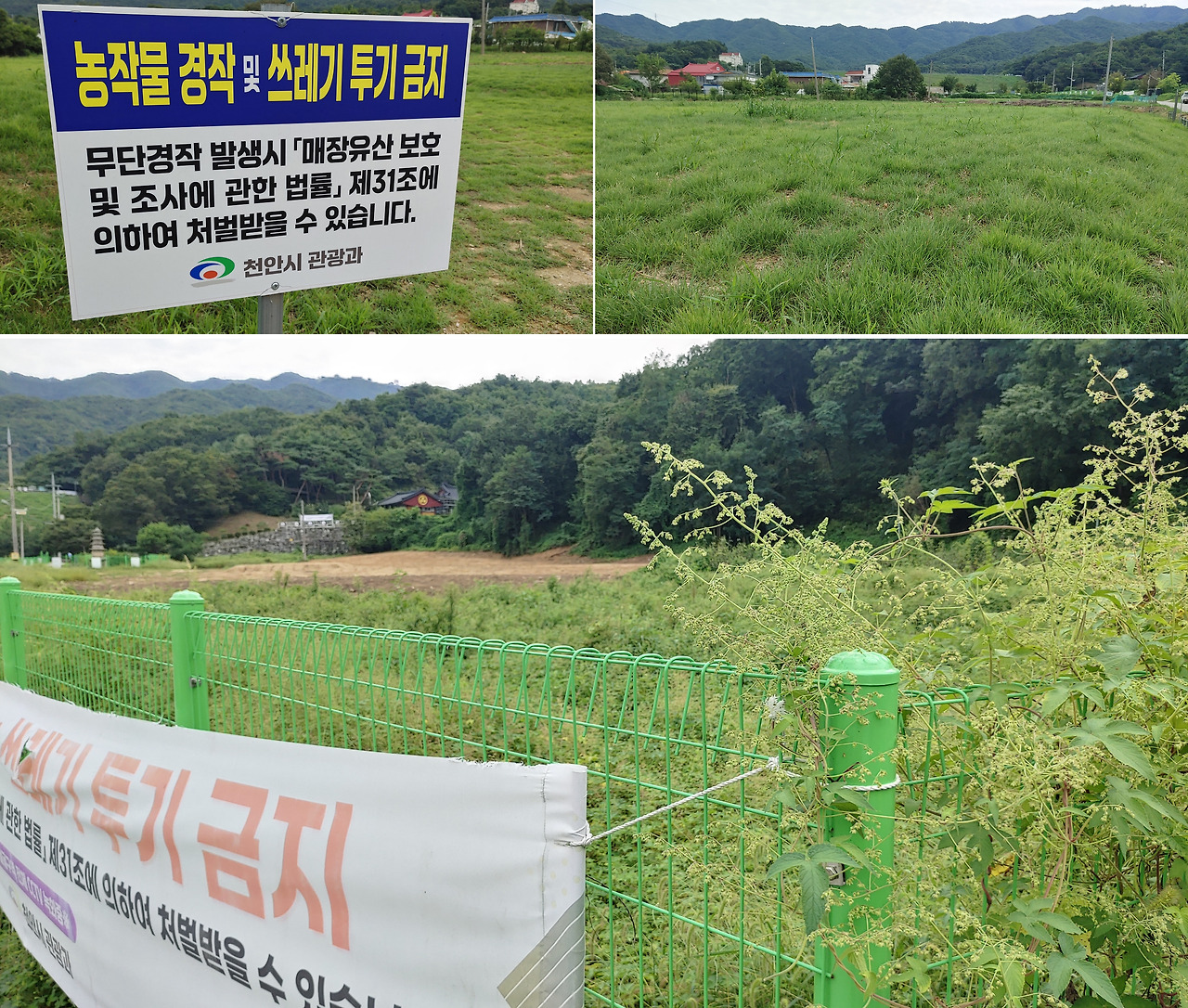 천흥리 마을로 들어서면, 풀만 무성한 꽤 넓은 토지가 방치 중인 듯 보이나, 이곳은 '매장 유산 보호 및 조사에 관한 법률'에 의해 농작몰 경작이나 쓰레기 투기가 금지된 곳으로, 땅속에는 아직 빛을 보지 못한 귀중한 우리 문화재가 담겨 있다.