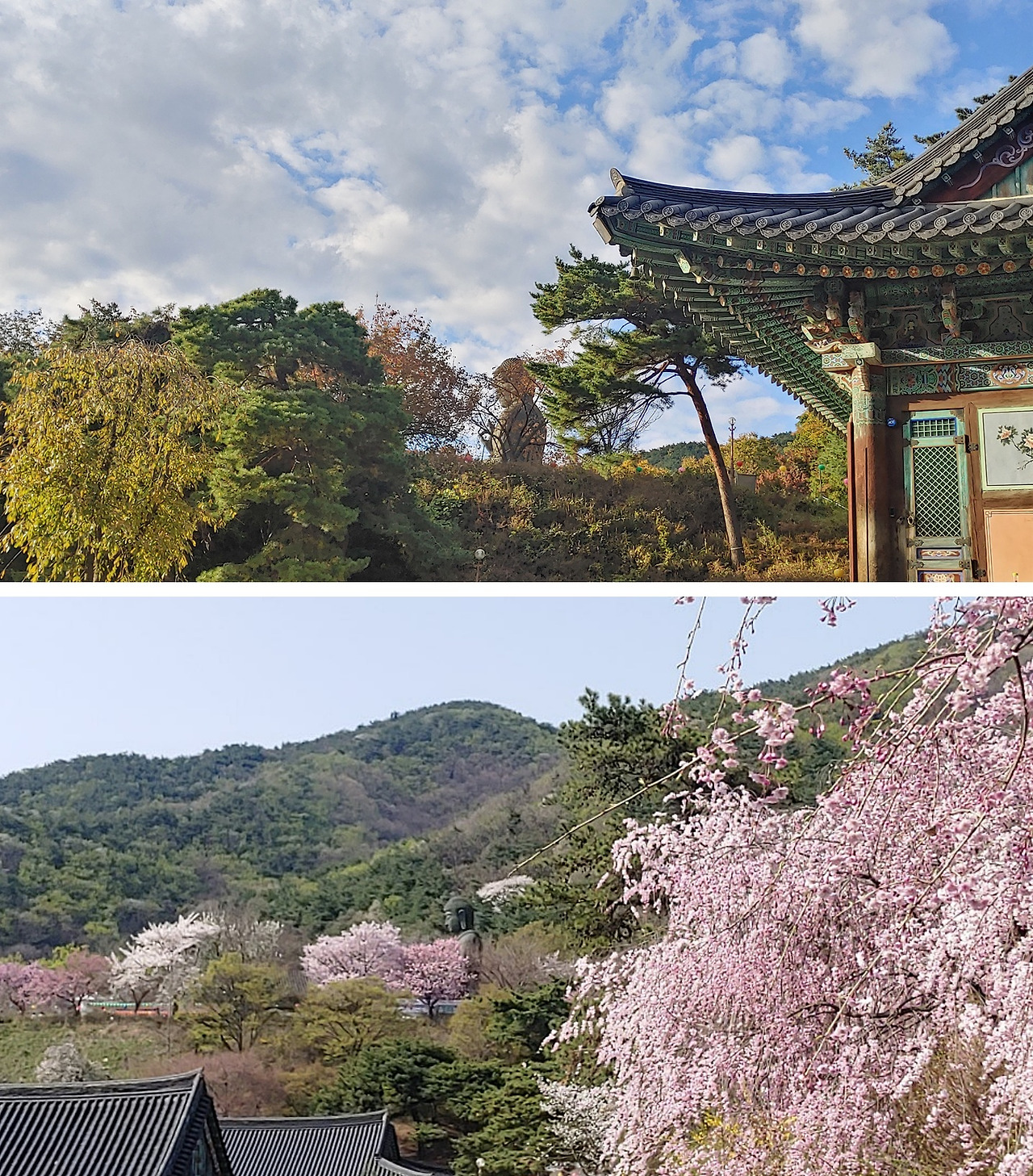 문득 작년 봄 4월에 찾았던 태조산 각원사 겹벚꽃 풍경이 눈에 선하다.