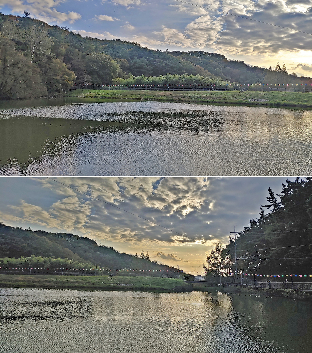 지는 해, 노을빛, 바람에 흔들리는 연곡지 잔물결도 시간을 감싸 안는다.