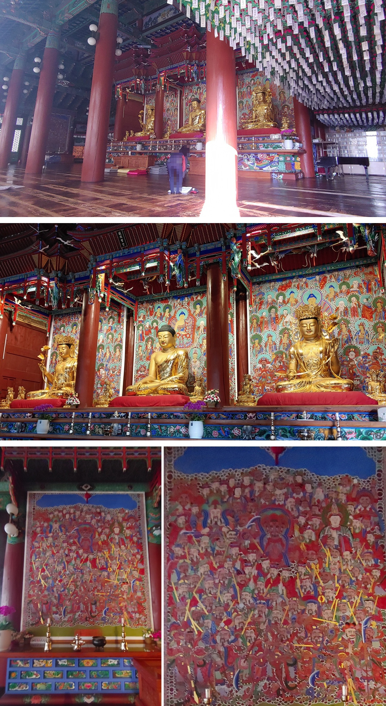 성종각 1층을 통해 돌계단을 오르면, 거대한 광장을 가운데 두고 정면으로 각원사 대웅보전이 보인다. 대웅보전 왼쪽엔 경해원, 오른쪽으론 관음전이 위치해 있는데, 사찰에 규모가 웅장해 보일 정도로 크고 탁 트여 있다. 우리나라 사찰 중 이 정도 규모의 대웅전은 찾아보기 힘들 것이다.