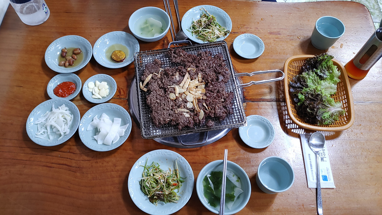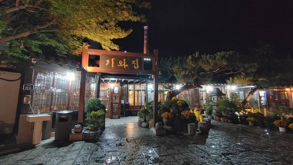 도착 첫 저녁식사는 '언양 기와집 불고기'를 먹기로 했다. 평일 저녁시간인데도 몇 분 대기했다가 들어설 정도로 붐볐다. 이렇게 많은 사람들이 한꺼번에 모여드는 곳이라면, 촘촘한 서비스를 기대하긴 힘들겠다는 것이 단점일 수도 있지만, 언양에서는 꽤 유명한 맛집이었다. 한옥 기와집에 아름다운 정원이 또 다른 볼거리를 제공하는 곳이며, 주차장도 꽤 넓었다.
