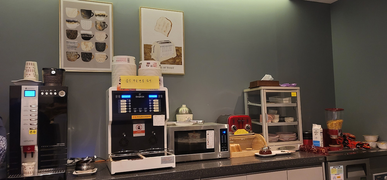 '브라운 도트 호텔'에는 스타일러와 공기청정기도 설치되어 있고, 간단한 조식 서비스도 가능했다.