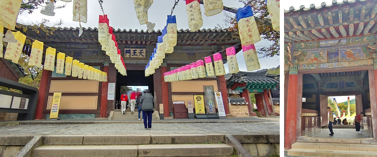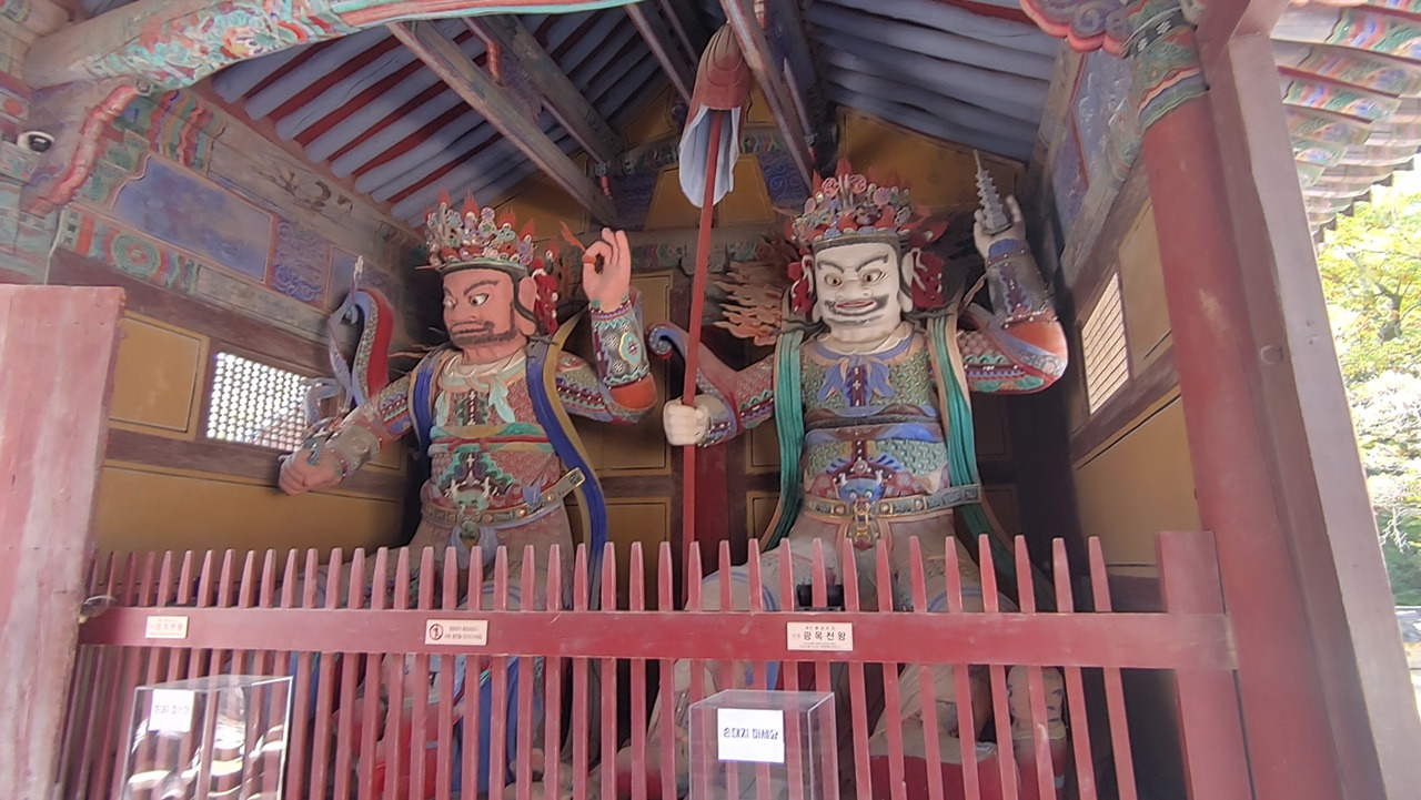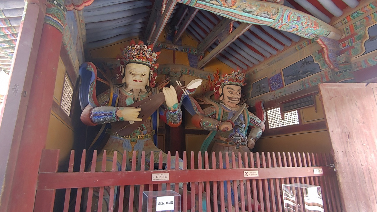 천왕문을 들어서면 나무로 조각한 사천왕이 커다란 두 눈을 부라리며 우뚝 서 있다.