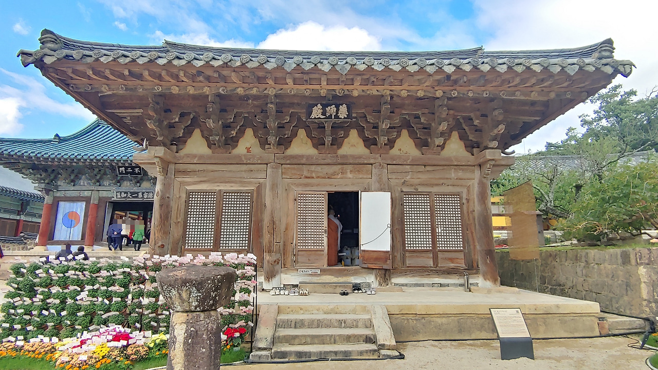 공민왕 18년(1369년)에 지었고, 조선 숙종 40년(1714년)에 다시 고쳐지었다. 일반적인 건축물과 달리 측면에 어간(전각의 중심을 세로로 잇는 영역) 출입문을 두었다.