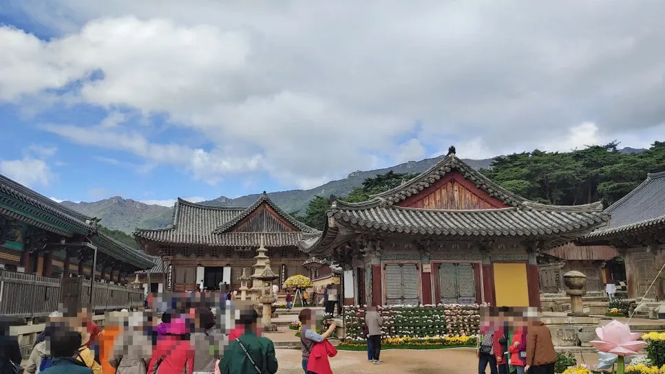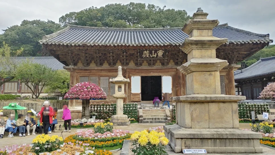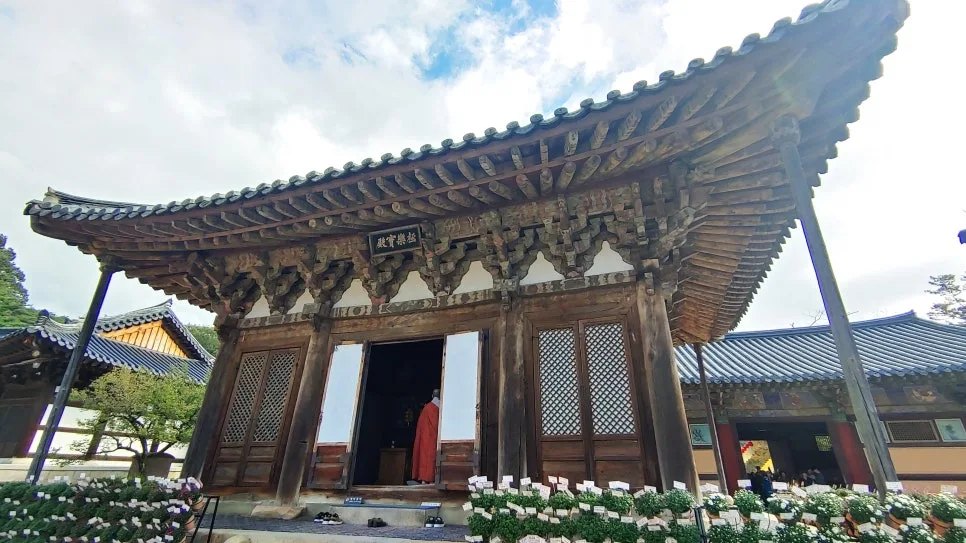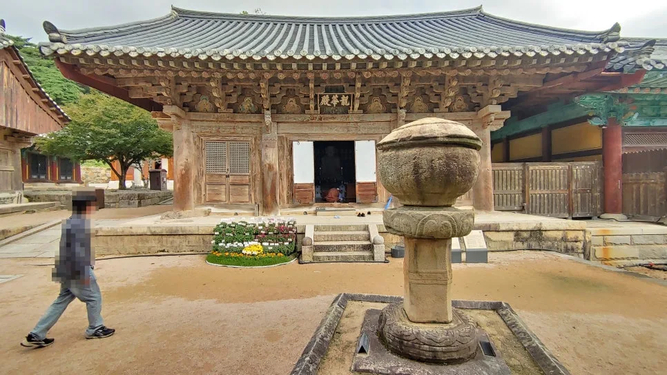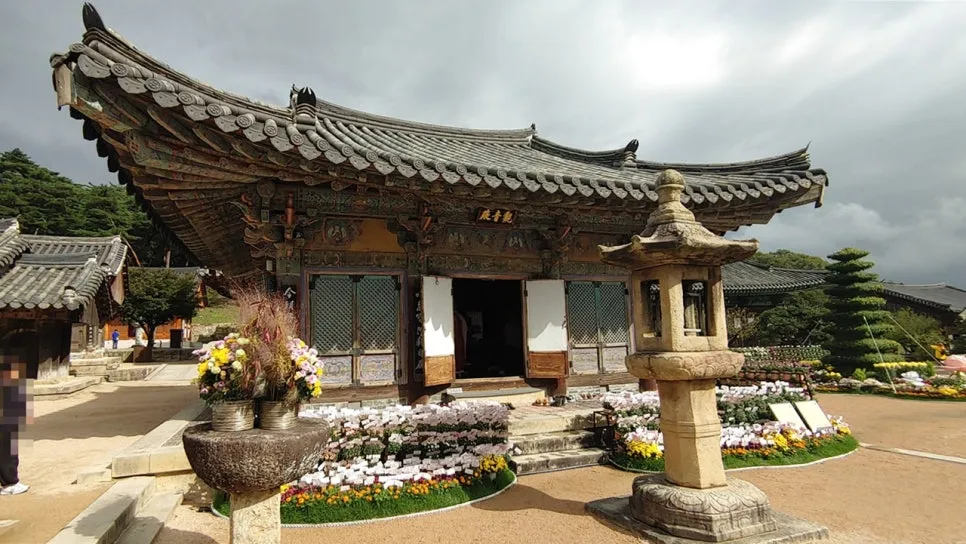 하로전인 불이문을 들어서면 정면으로 조금 멀리 상로전에 속하는 대웅전도 보이고, 중로전인 설법전은 왼쪽에, 오른쪽으론 관음전과 홍화전까지 한눈에 들어온다.