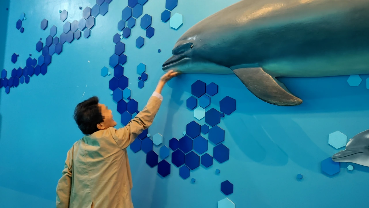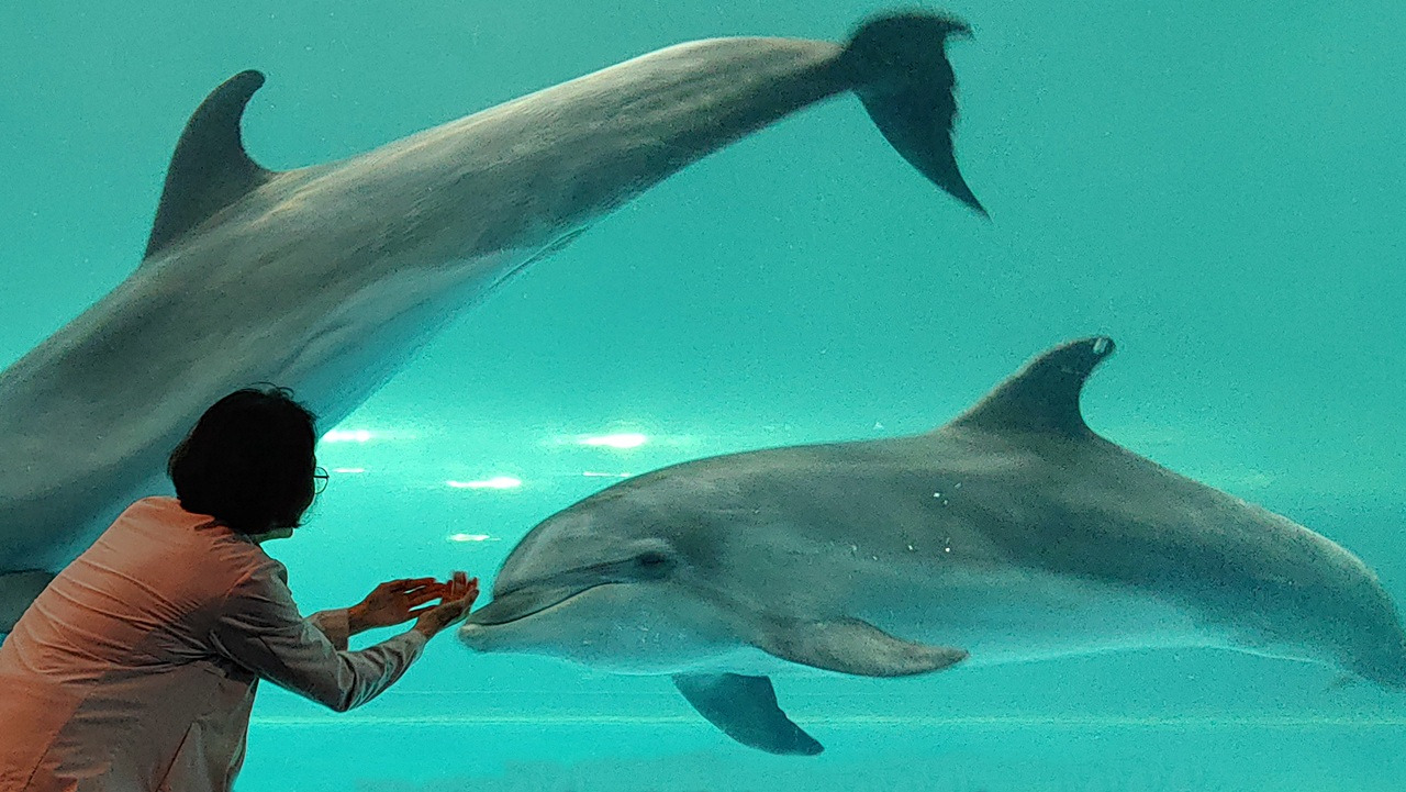 이곳 대형 수족관에서 건강하게 보호받으며 생활하고 있다지만, '우리 친구'라는 이름으로 갇혀 지내는 모습이 애잔해 보였기 때문이다. 돌고래 얼굴을 가만히 들여다보았다. 보면 볼수록 선한 눈과 미소 짓는 듯한 커다란 입이 어찌나 사랑스럽던지! 고래는 '지구에서 가장 큰' 우리의 선한 친구'임이 분명해 보였다.