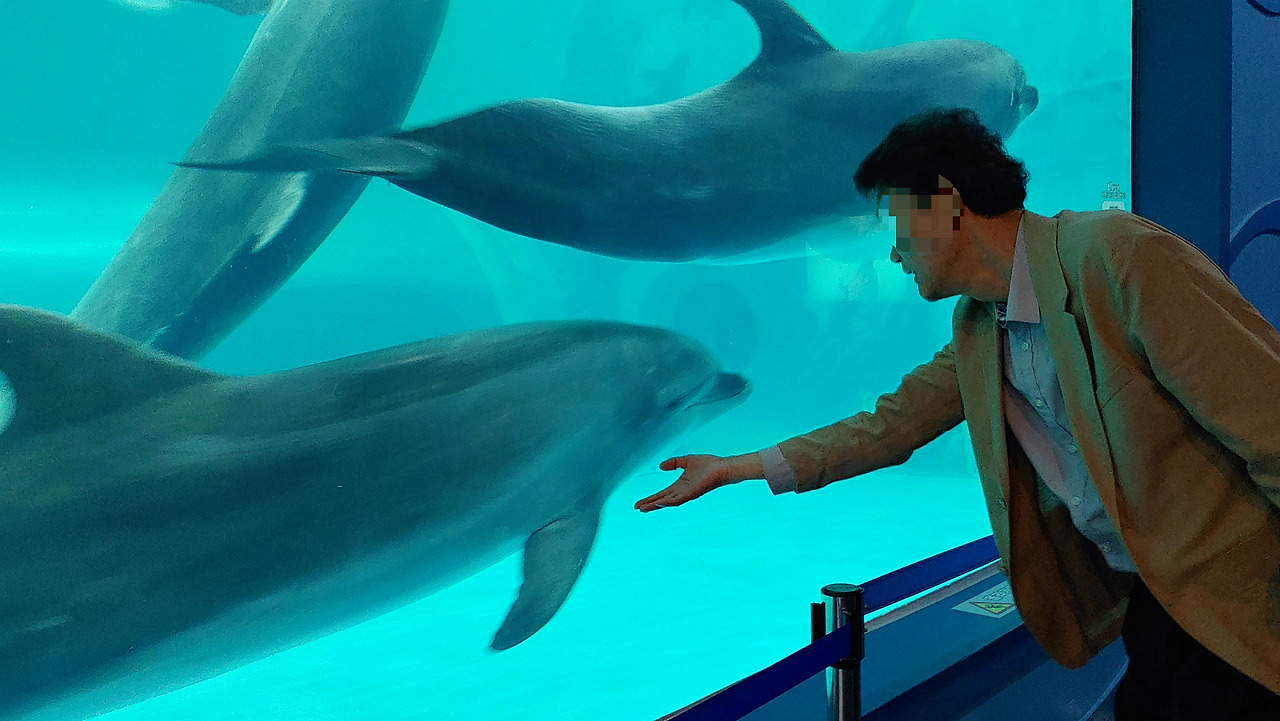 특히, 돌고래 가족이 해설사와 함께 호흡을 맞추는 정겨운 모습에서는, 돌고래의 손 터치와 높이뛰기도 볼 수 있다고 한다. 우리는 전날도 오후 늦게 입장했고, 다음 날에도 오전 10시경에 입장했다. 설명회는 자연스레 패스했지만, 돌고래와 손 터치(물론 수족관 벽을 사이에 두고)를 해 보았으니, 이로도 행복했다.