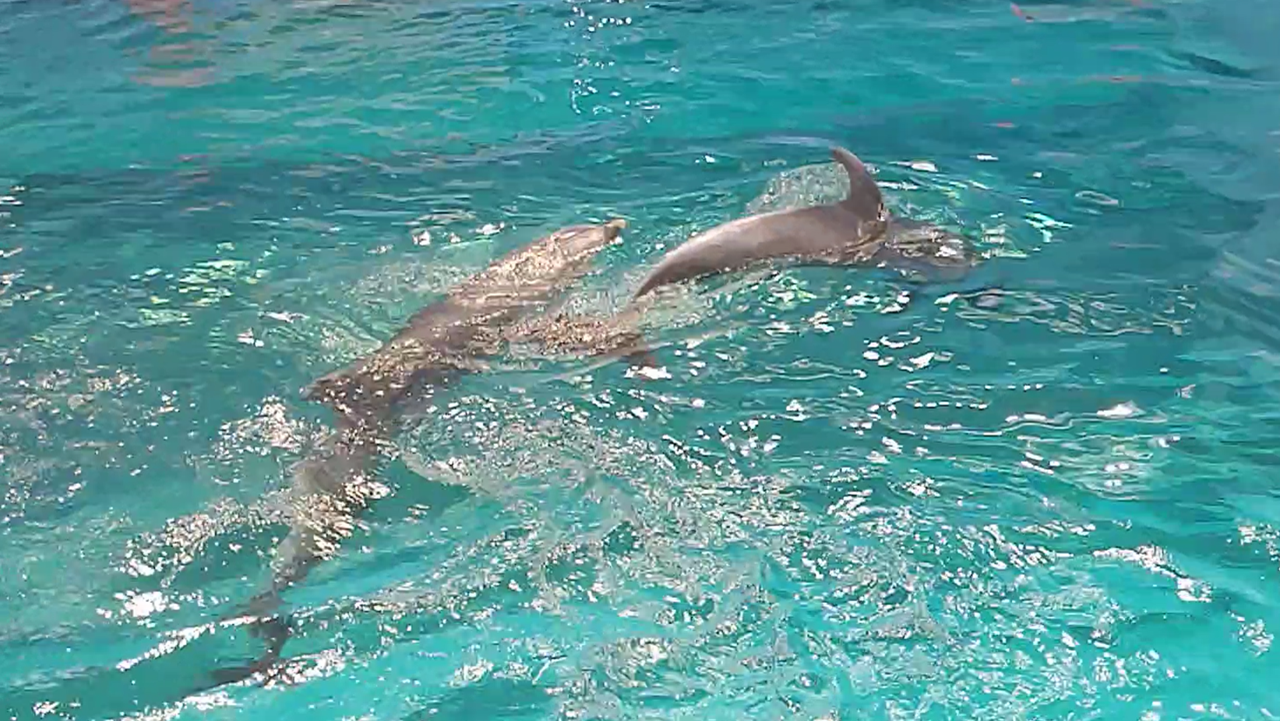 수심이 1층에서 3층까지다 보니, 돌고래 가족이 모두 1층으로 내려가면, 그동안 3층에선 돌고래를 볼 수가 없다. 대부분 함께 이동하고, 같이 어울려 노는 모습을 보면 사이가 참 좋아 보인다.
