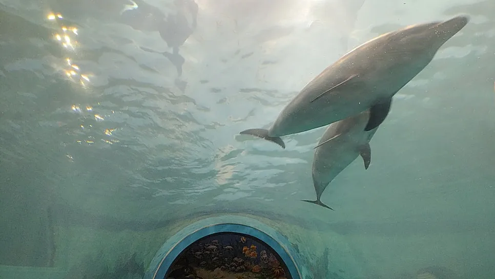 장생포 고래생태체험관 3층 수족관에서 찍은 돌고래 가족의 모습