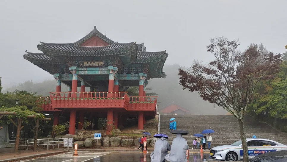 불국사를 둘러보고 석굴암으로 향하는 길, 가을비가 예사롭지 않게 쏟아졌다.