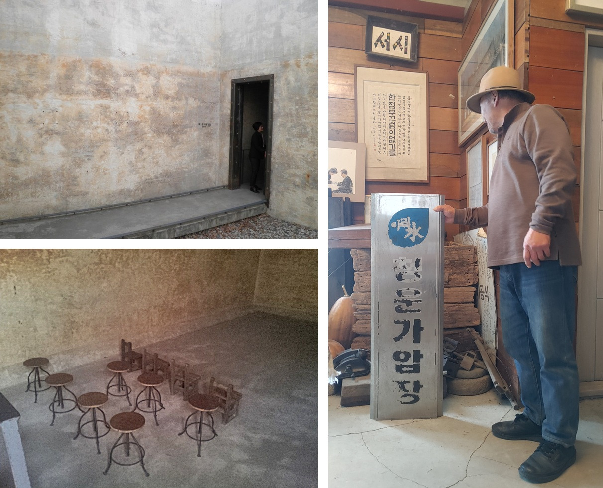 열린 우물(제2전시실)에서 닫힌 우물(제3전시실) 입구가 바라다 보인다. 폐기된 물탱크를 원형 그대로 보존하여 만든 시멘트 벽 속으로 사람들은 윤동주 시인을 만나러 들어간다. 제3전시실은, 우리가 동주 시인의 삶에 조금이라도 동참하는 의미에서라도 편한 의자에 앉으면 안 될 것 같은 생각이 들던 곳이다.