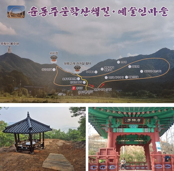 윤동주 문학산촌 정자인 '序詩亭'은 천안시에서 지원하여, 완성됐다. '서시정' 현판은 한국 최고의 서예가 초정 권창윤 선생 작품이다. 우리는 사나운 날씨 탓으로 '윤동주 문학산촌'만 둘러보고, '서시정'엔 오르지 못했다. 새봄이 오면, 다시 찾아와 서시정에도 올라보리라 다짐하며, 동주 시인 유물 및 자료 임시 보관실로 내려왔다.