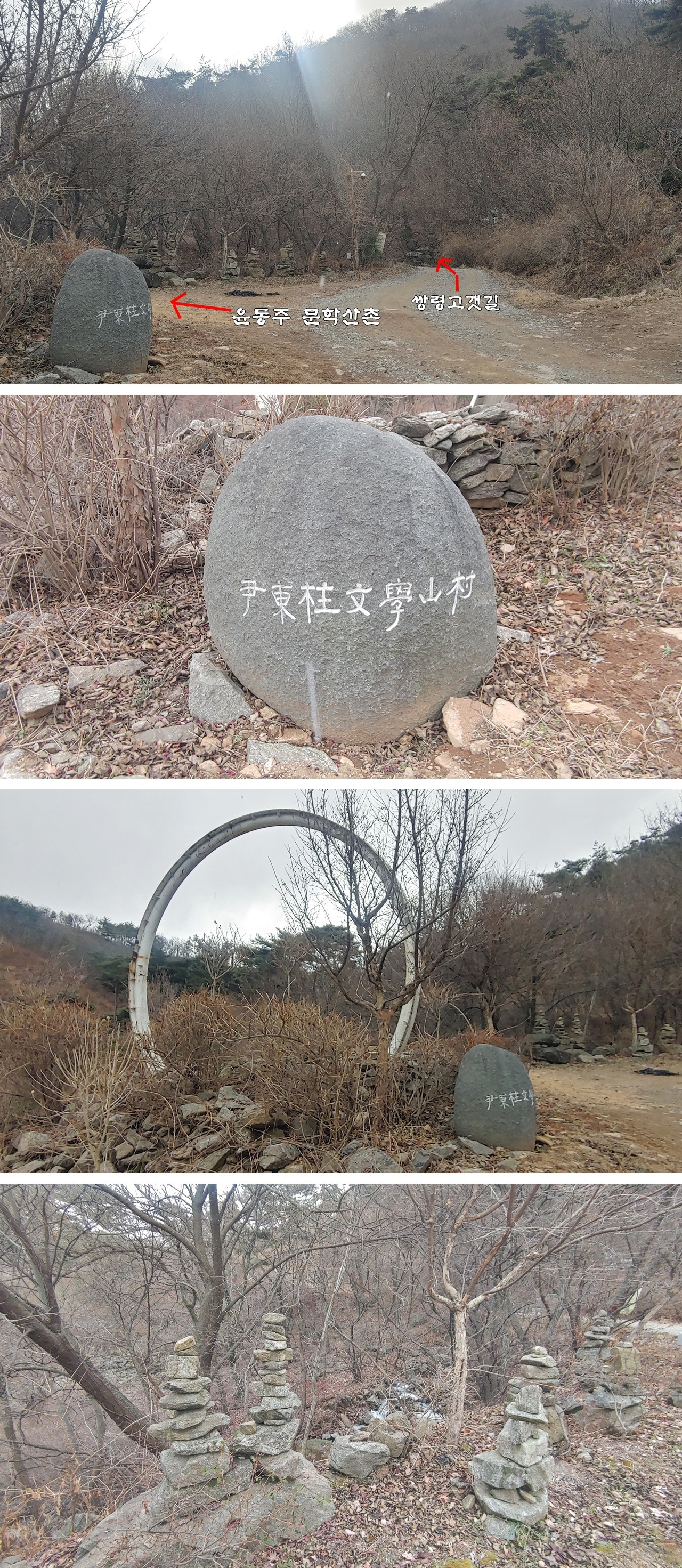 '윤동주 문학산촌'을 찾은 1월 10일(토) 오후. 폭풍처럼 휘몰아치던 바람을 가르며 광덕면 무학산 쌍령 1길로 향하는 길은 마치 동주 시인의 짧은 생을 내내 뒤흔들어 놓았던 일제 식민지의 암울감을, 감히 상상하게 만들 정도로 드셌다. 이리저리 휘몰아치던 변덕스러운 비바람에 화들짝 놀라면서도, 누군가 우리 어깨를 힘껏 토닥여 주고 있다는 느낌이 들었던 건, 동주 시인의 흔적을 찾아가는 마음속에 그의 짧고 굵은 생이 얼마나 커다란 울림으로 함께 하고 있는지를 잘 알기 때문인지도 모른다.