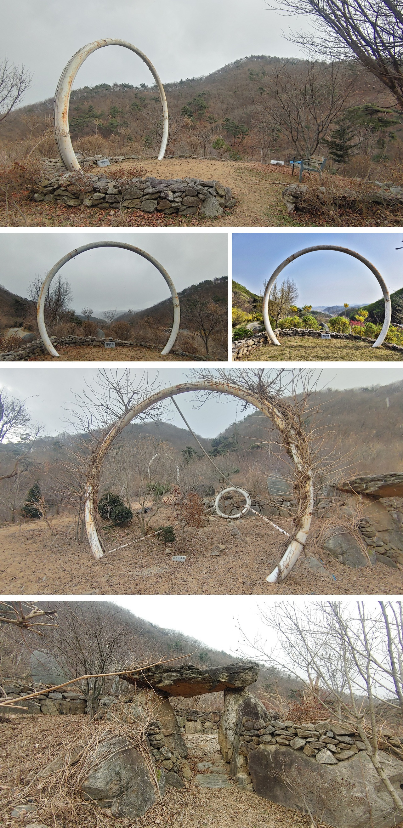 작품명 '겨레의 눈'과 '민족의 소리'는 독립기념관 제3전시관, 윤동주 시인이 태어난 북간도 항일독립운동사 전시품이었으나, 기념관 리모델링 공사로 철거된 것을 '윤동주 문학산촌'에서 기증받아 작품명을 붙이고 그 의미를 재해석해서 이곳에 다시 세웠다.