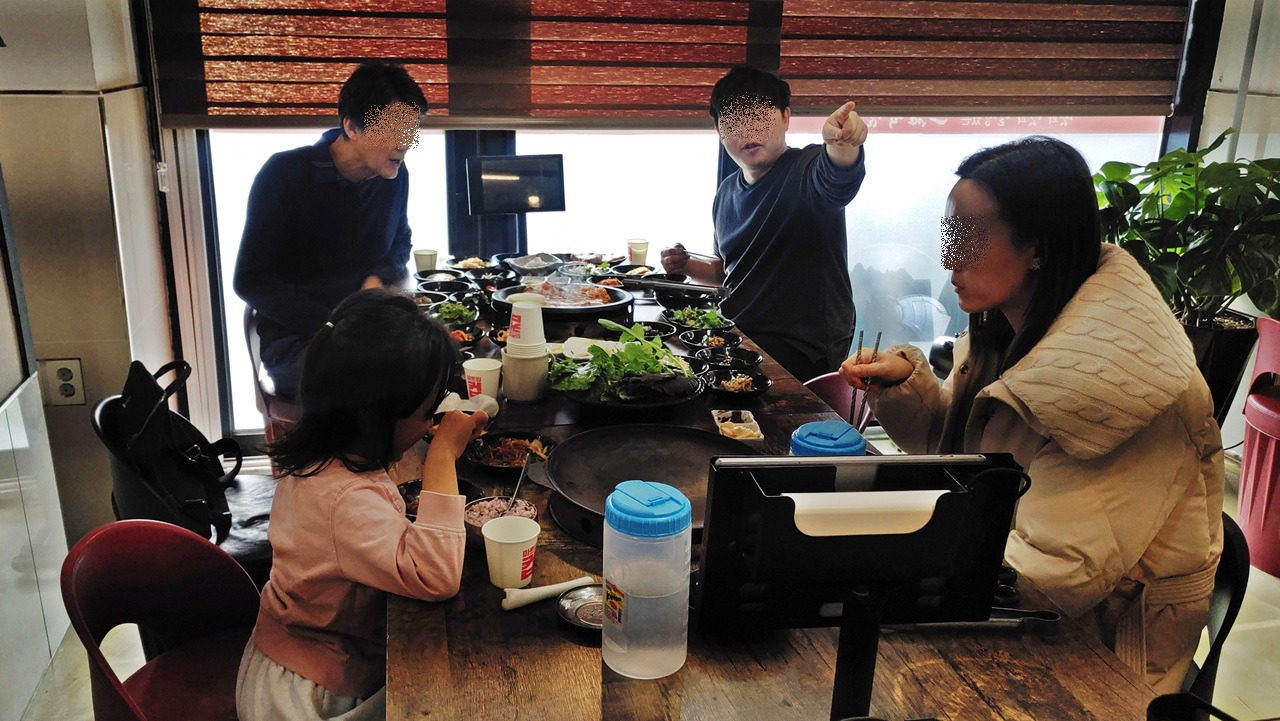 1월 마지막 날(토), 꾸미 아빠 생일을 미리 축하하고 왔다. 생일이 평일일 경우, 금일봉만 보내곤 했는데, 이번엔 줄넘기하는 꾸미의 귀여운 모습을 직접 보고 싶어, 꾸미 가족과 간소한 점심 식사를 즐기러 갔다.