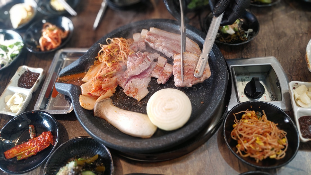 우리는 그때처럼 '벌집삼겹살'과 '한방 양념불고기', '꿈속의 볶음밥'을 시켰다.