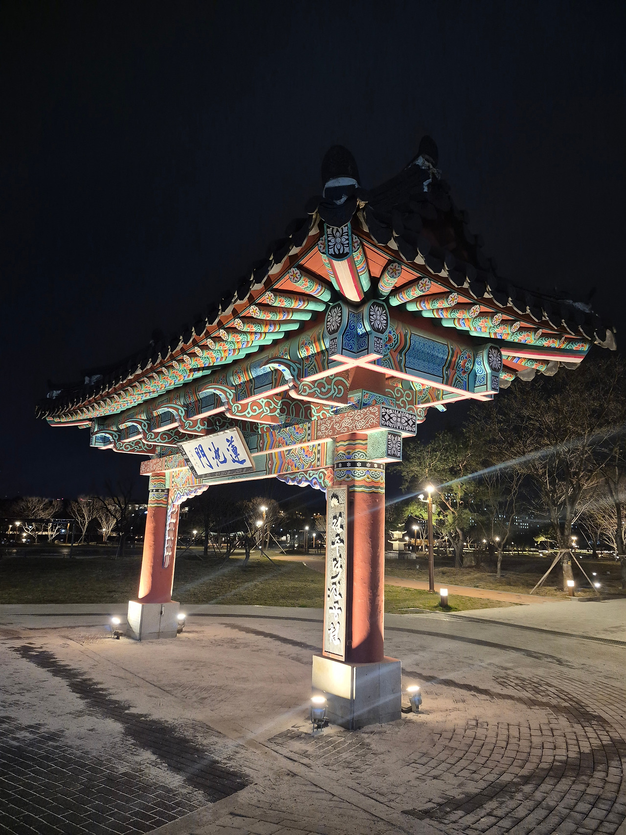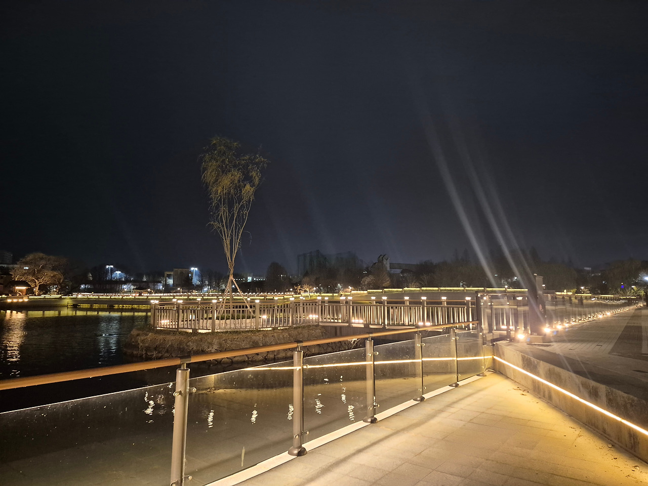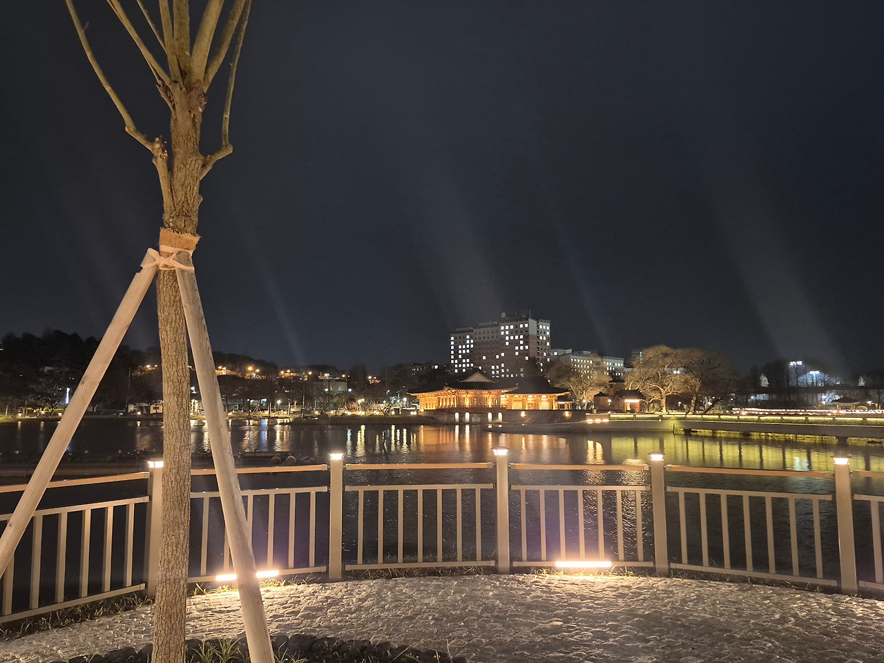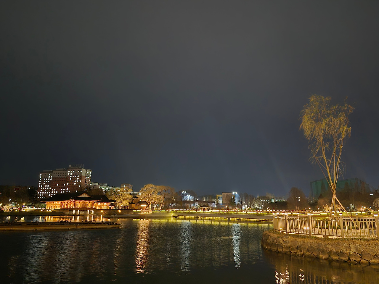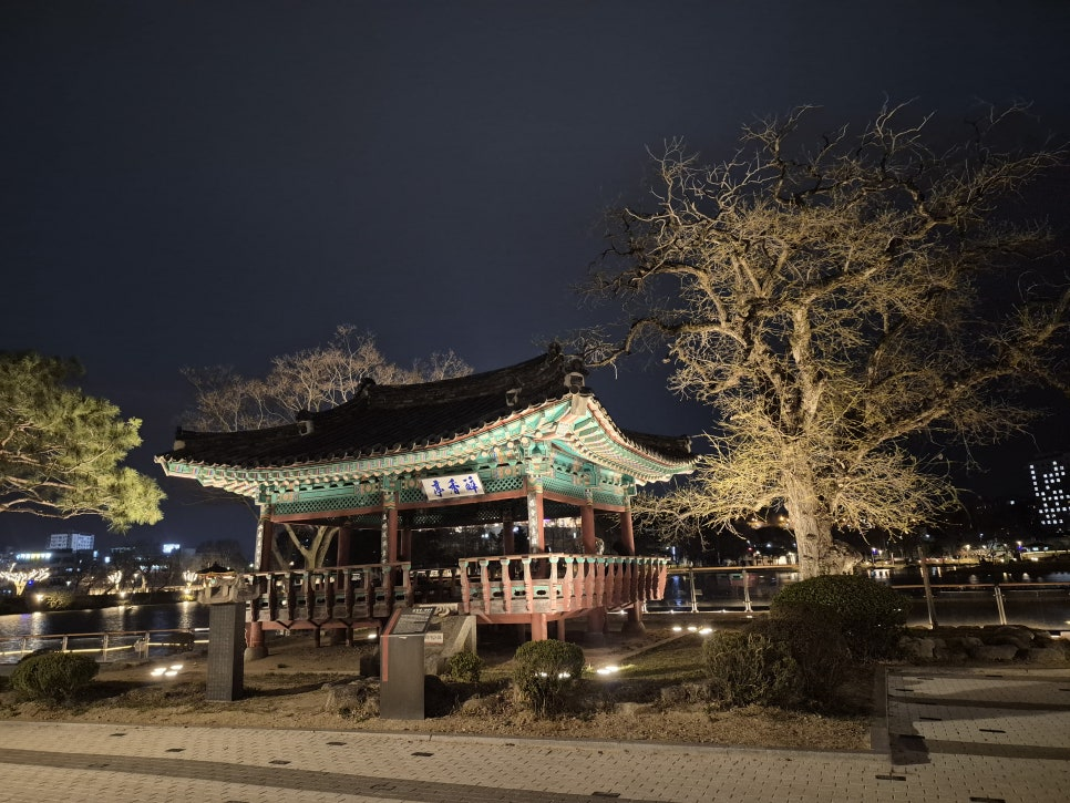 봄비가 한두 방울씩 내리기 시작했지만, '덕진공원'의 아름다운 야경이 자꾸 발길을 끌었다.