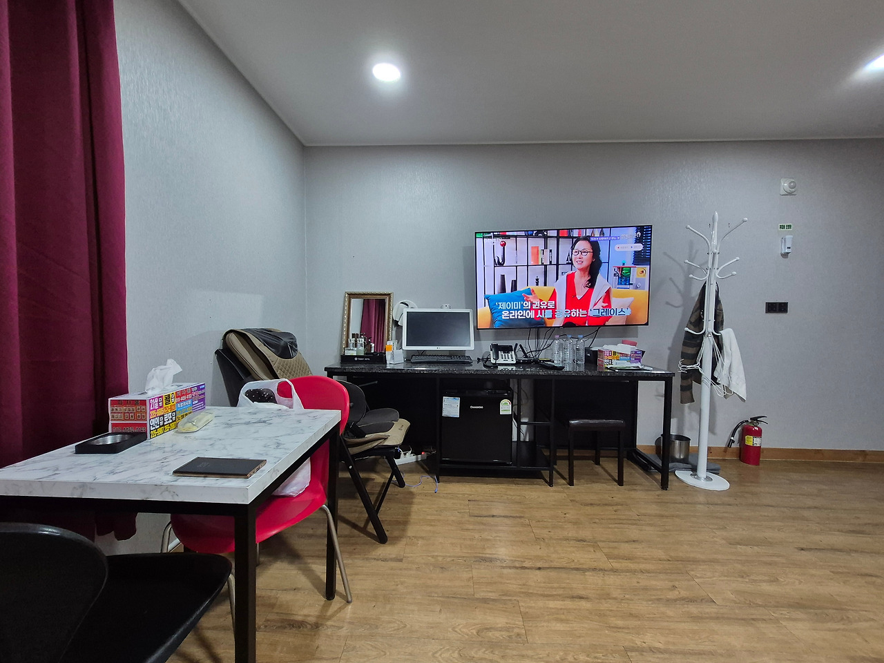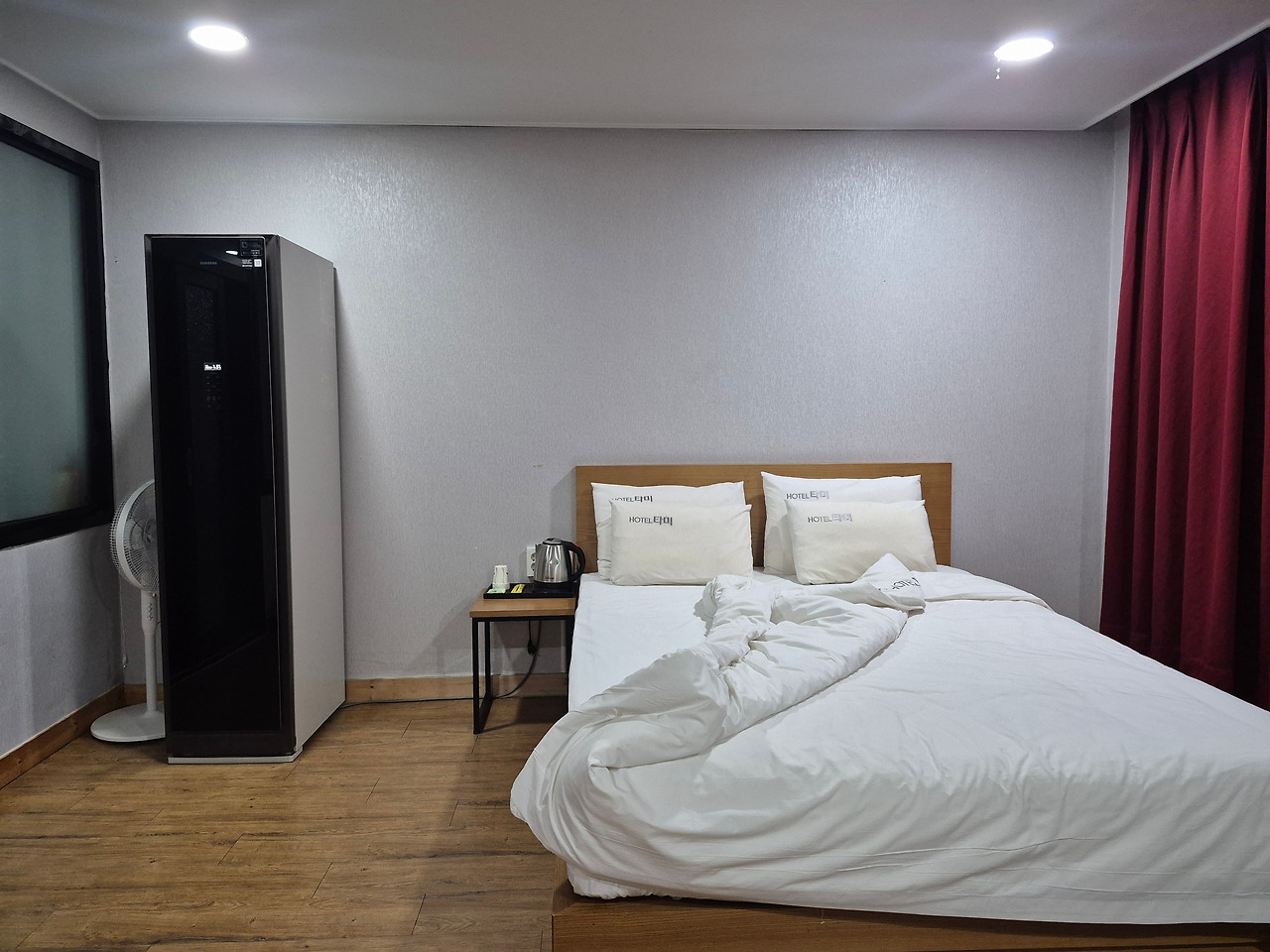 최신 호텔급은 아니지만, 우리 부부가 하룻밤 묵기엔 깔끔하고 널찍했다. 욕실의 흰 타일 벽과 욕조가 깨끗해서 이용하는 마음이 편했다. 특히, 봄비가 내려서인지 밤새 내내 난방이 작동, 온몸이 따뜻하고 노곤한 채로 숙면을 취할 수 있어, 더욱 좋았다.