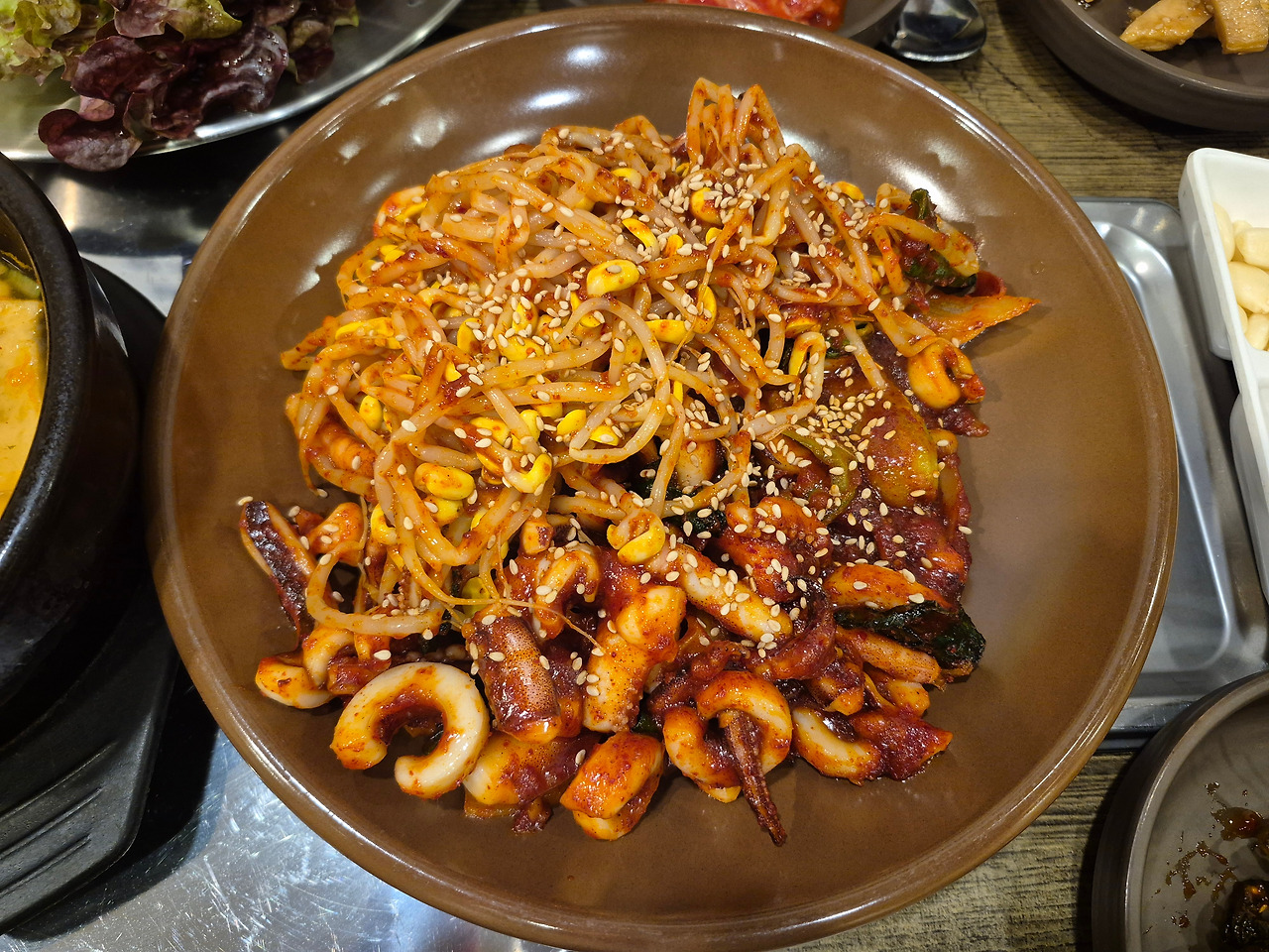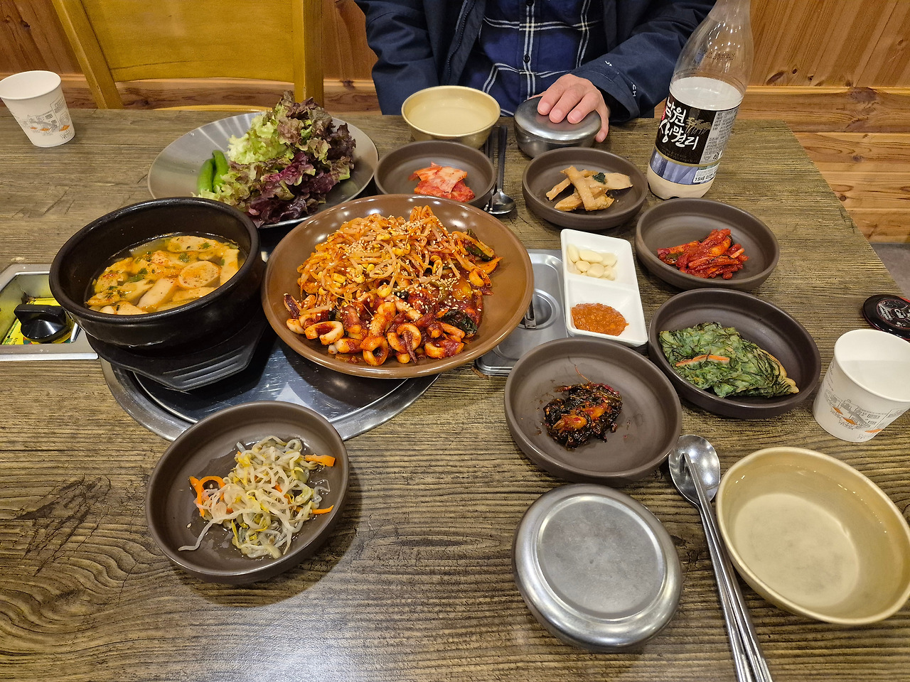 오징어볶음은 매운 정도와 익힘 상태가 딱 좋았다. 쫄깃쫄깃한 오징어와 아삭아삭한 콩나물이 조화를 이룬 맛이었지만, 최근 두 사람 모두 입맛을 잃은 건강 상태여서 아쉽게도 반찬을 남기고 나왔다. 밑반찬은 맛도 메뉴도 부실한 편이었는데, 이도 물가가 오른 탓일까. 세월이 흐르니, 전라도 고유의 맛깔난 밑반찬을 기대하는 것이 오히려 이상한지도 모르겠다.