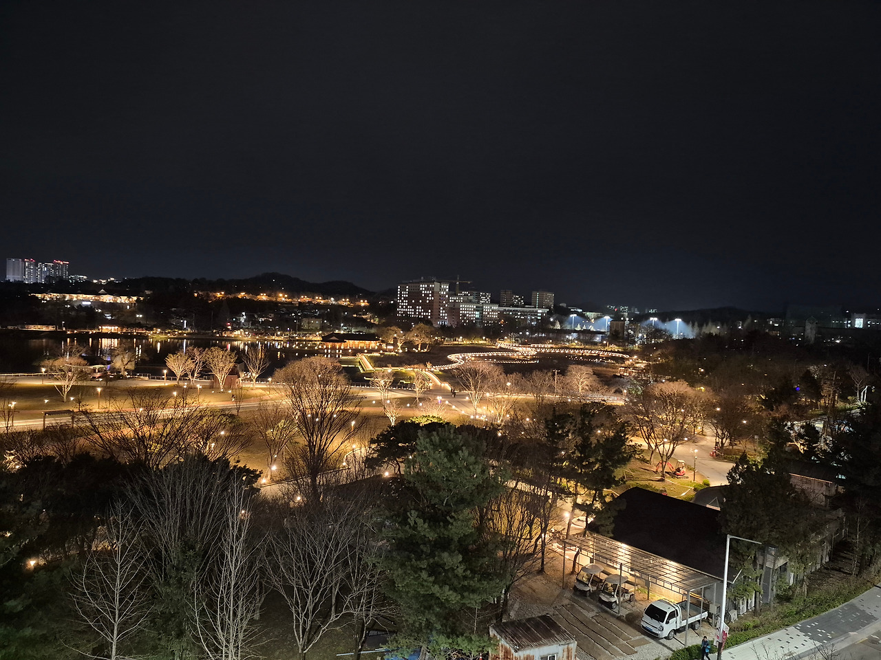 타미 호텔 7층 룸에서 덕진공원이 한눈에 내려다보였다. 부슬부슬 밤비가 오락가락 내리는 덕진공원 야경은 한마디로 압권이었다. 내일 아침엔 또 어떤 풍경을 마주하게 될까!