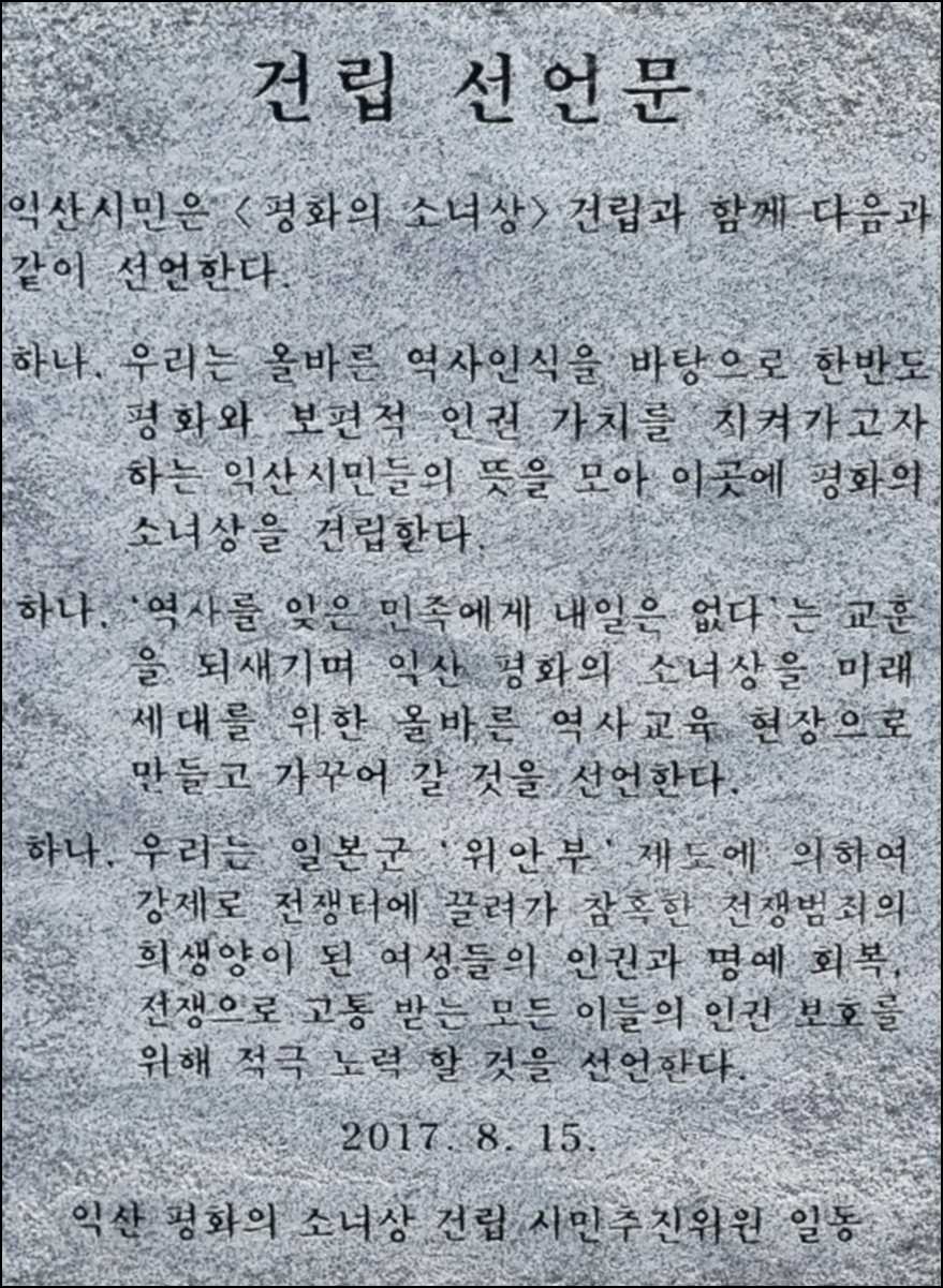 호남 교통 관문이자 일제 수탈 현장으로 민족의 아픔을 간직해 온 역사적 장소인 이곳에 2017년 8월 15일 72주년 광복절 기념, '익산 평화의 소녀상'이 세워졌다.