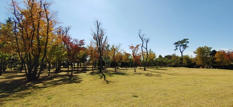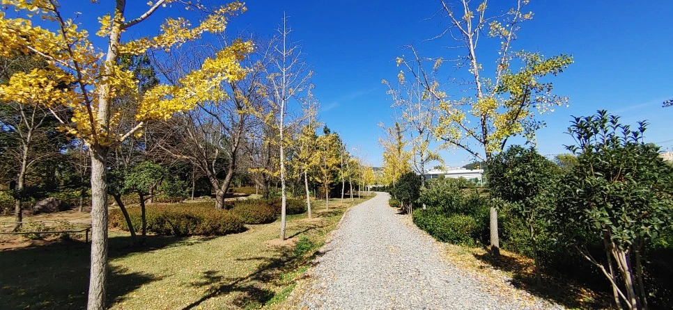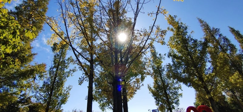가을 햇살 사이로 노란 잎들이 살랑거리며 춤춘다.