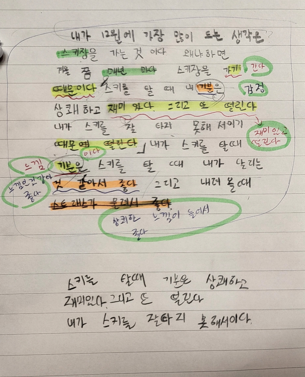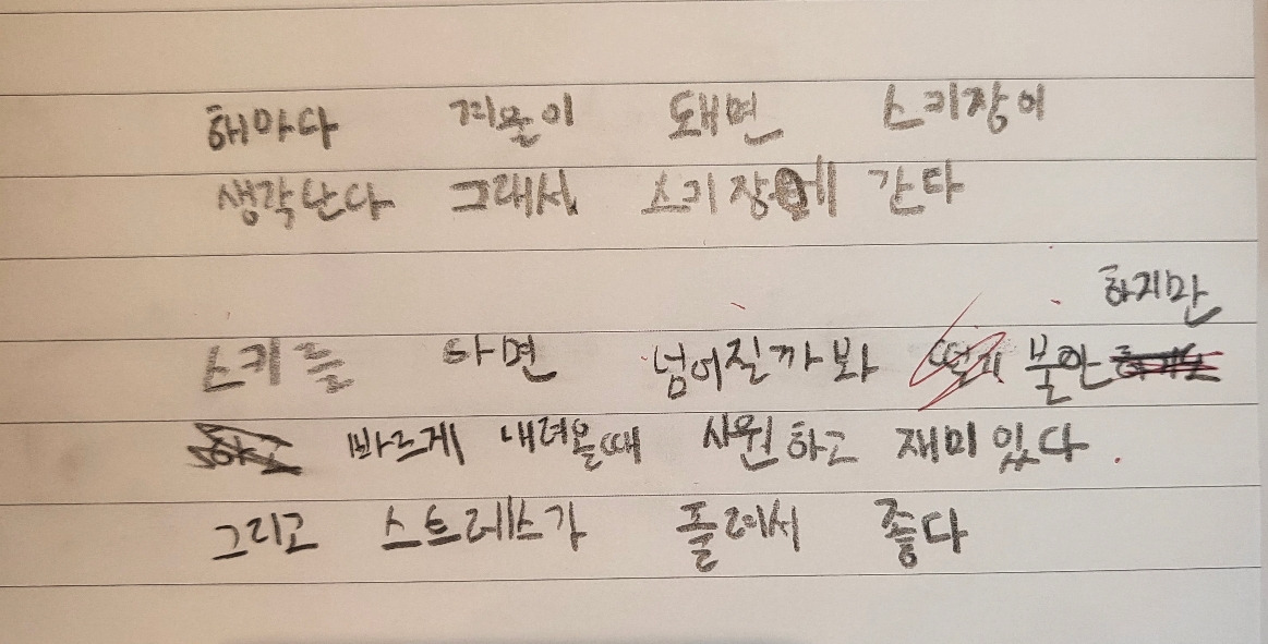 수업은, 제시된 방법을 엄마가 집에서 전달해 주는 방식이었다. 그래서 이번엔 엄마가 설명하는 대신, 내가 직접 아이에게 전화로 설명해 주기로 했다. 아이는 아무래도 엄마가 아니다 보니, 알아듣겠다 하고 그렇게 해보겠다 하지만. 쓰기를 할 때는 이전과 똑같은 상황으로 돌아갔다. 게다가, 정해진 제출 기간이 있어도, 과제물은 삶의 우선순위에 밀리기도 했다.