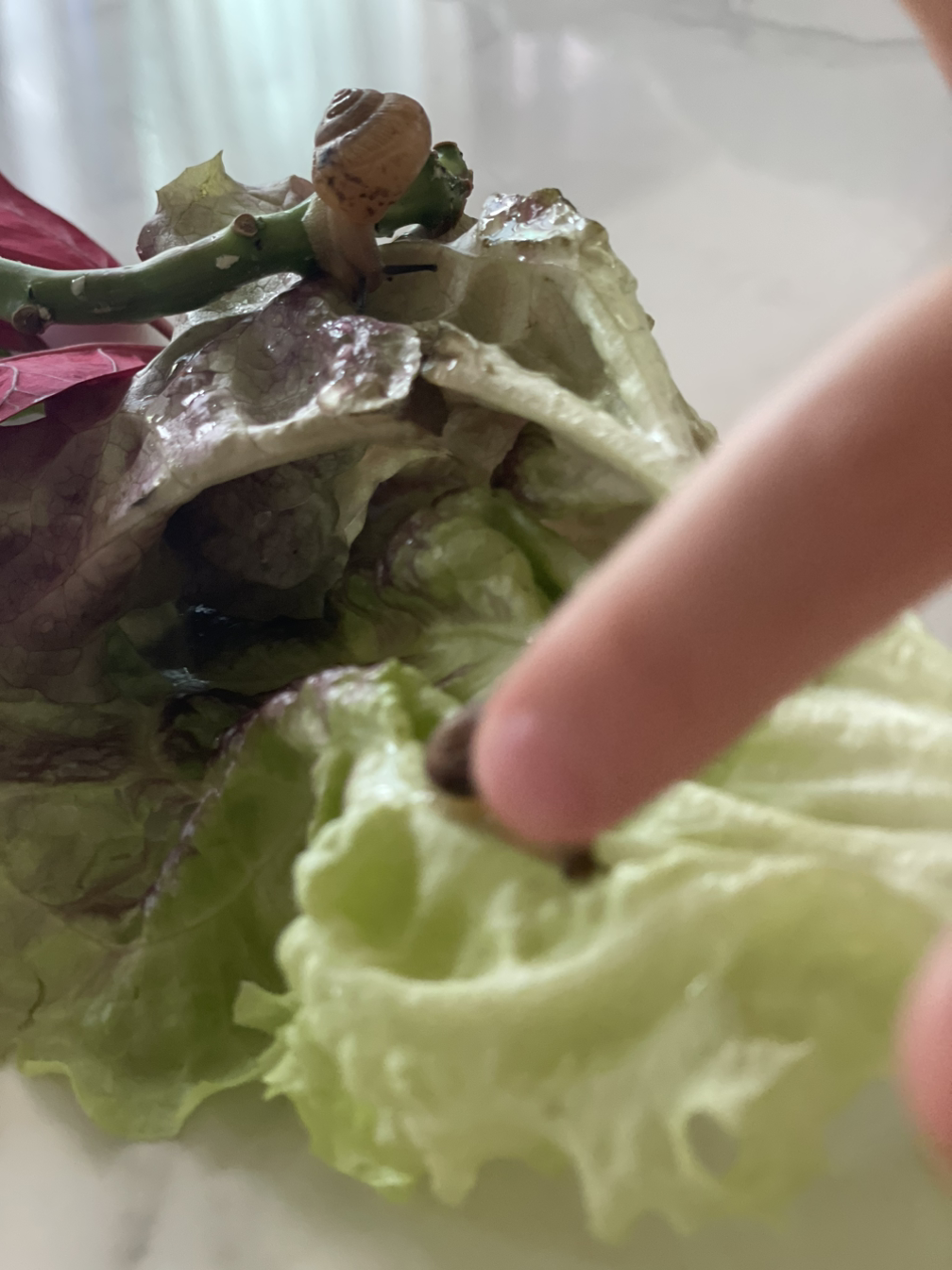 노지 상추를 씻다가 작은 달팽이 한 마리를 발견했다. 아들은 상추에 올려놓아준 달팽이를 유심히 본다. 천천히 미끄러지듯 움직이는 녀석. 더듬이 네 개가 건드리면 쏘옥 들어갔다 다시 나오는 게 마냥 신기한 지, 틈만 나면 한 번씩 건드려 본다. 달팽이도 스트레스받는다고 알려주지만... 또다시 달팽이를 냉큼 들어 올려 상추 맨 위로 올려놓는다. 산 위에 올려준 거라며 빠져나갈 구멍을 미리 만든다.