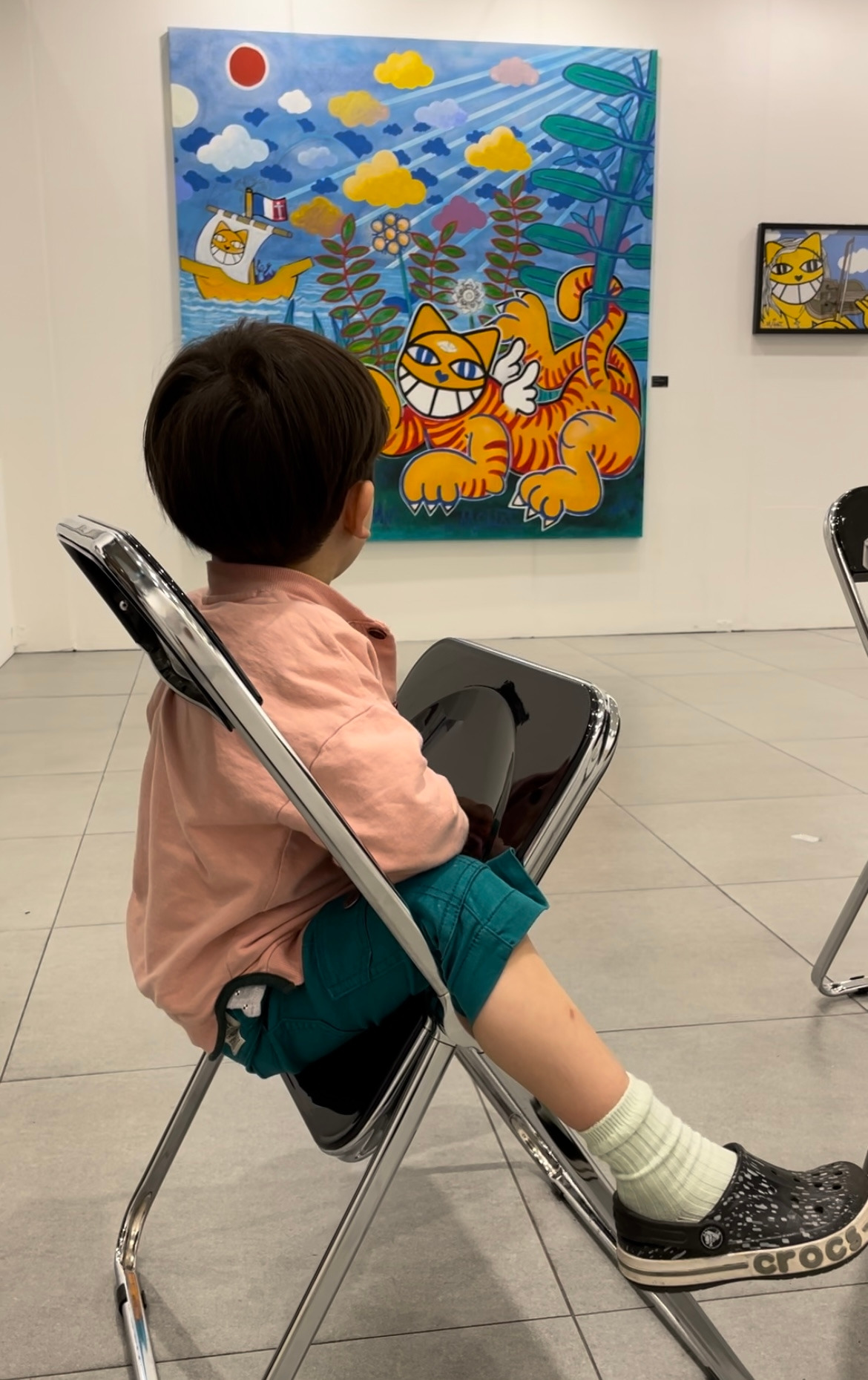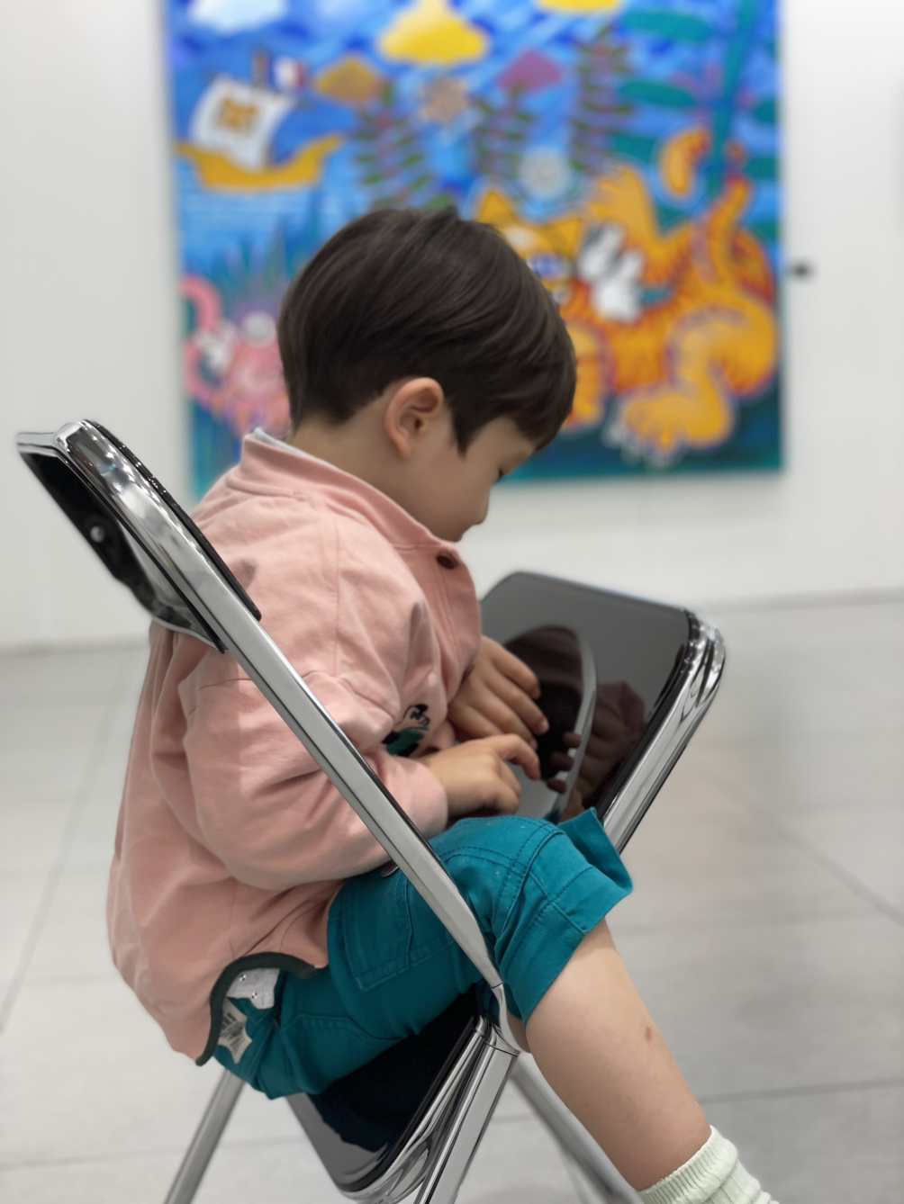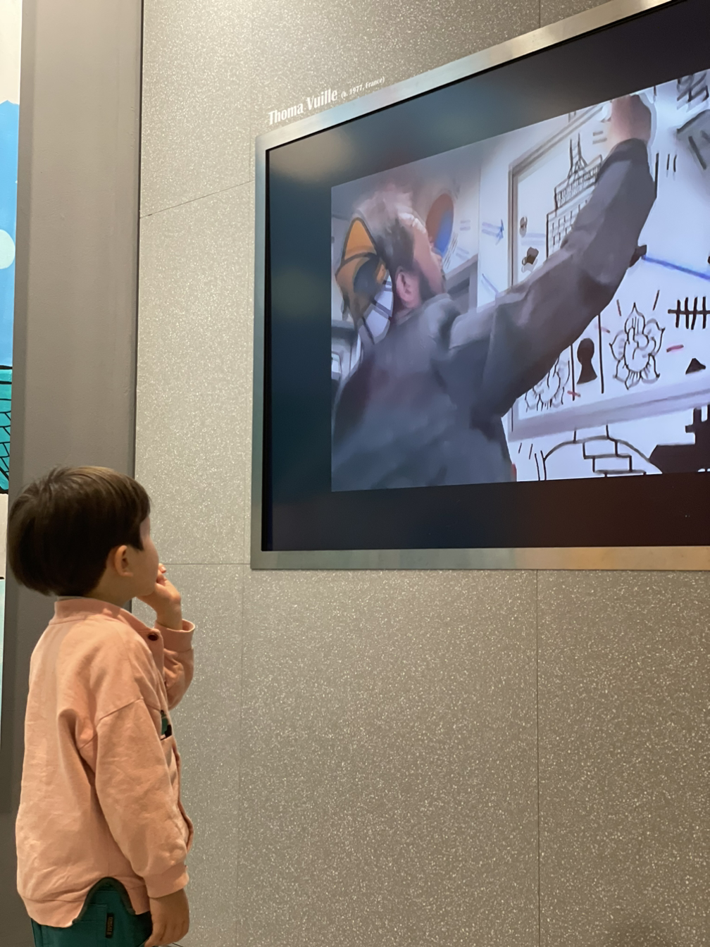 아들은, 그 어떤 전시보다도 자신이 재미있는 활동을 몸으로 표현하는데 가장 열중했다. 토마 뷔유 작가님에 따르면, 너는 이미 예술가다. 아직은 어린 예술가. 끊임없는 너의 몸짓들. 표현들. 고로 너는 존재하는... 예술가. 재미있는 게 무엇인지 귀신같이 알아내는 녀석. 사랑한다.