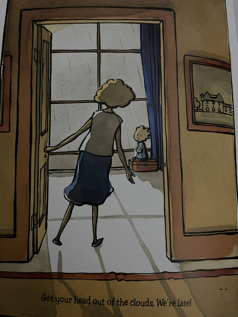 "Come on Oscar! Wake up! Get your head out of the clouds. We're late!"라고 한다.