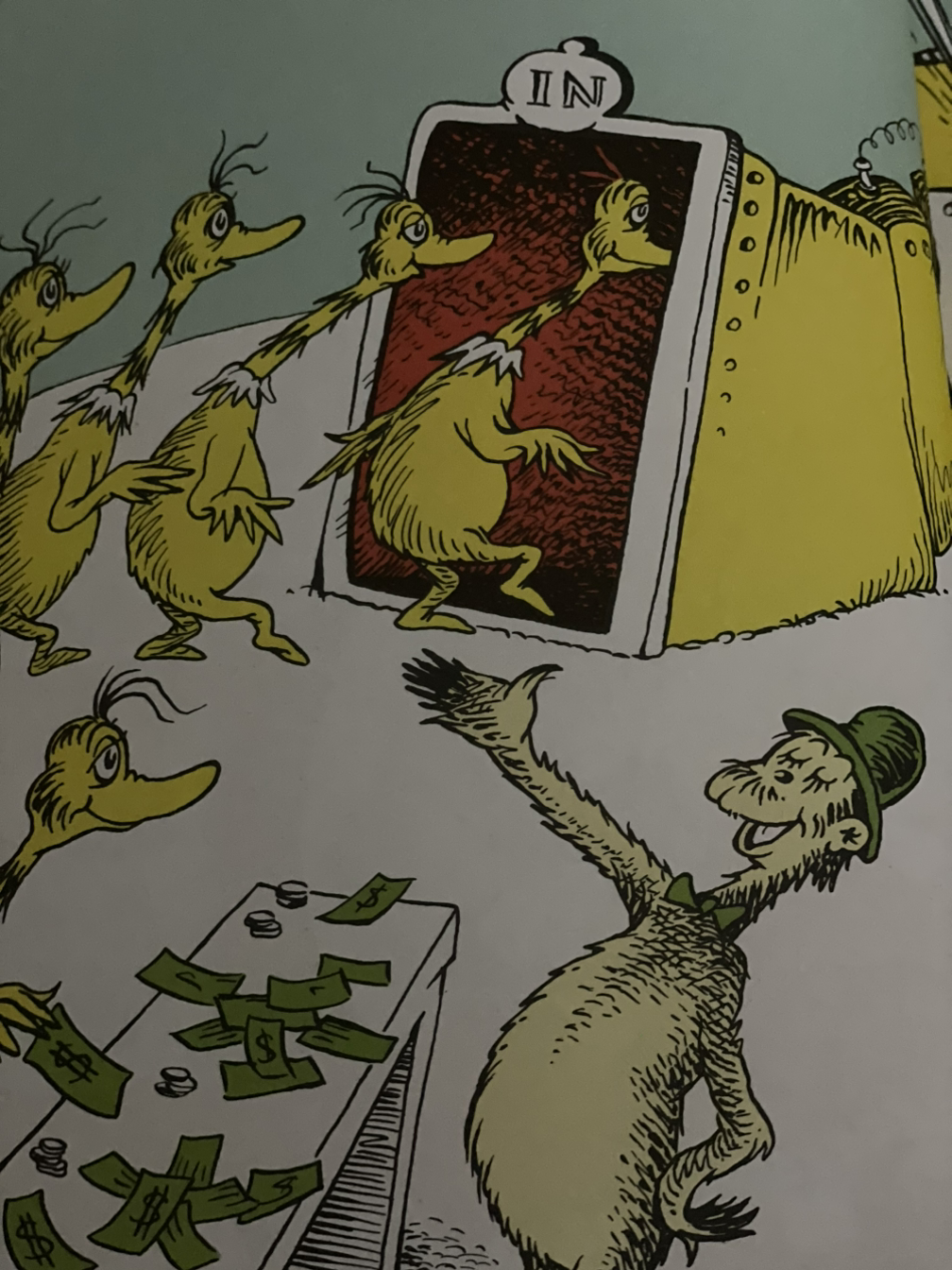 떼고 붙이고 떼고 붙이고 떼고 붙이고... 난리 북새통에 실베스터 맥몽키 맥빈은 행복한 비명을 지르며 순식간에 현금부자로 등극한다.