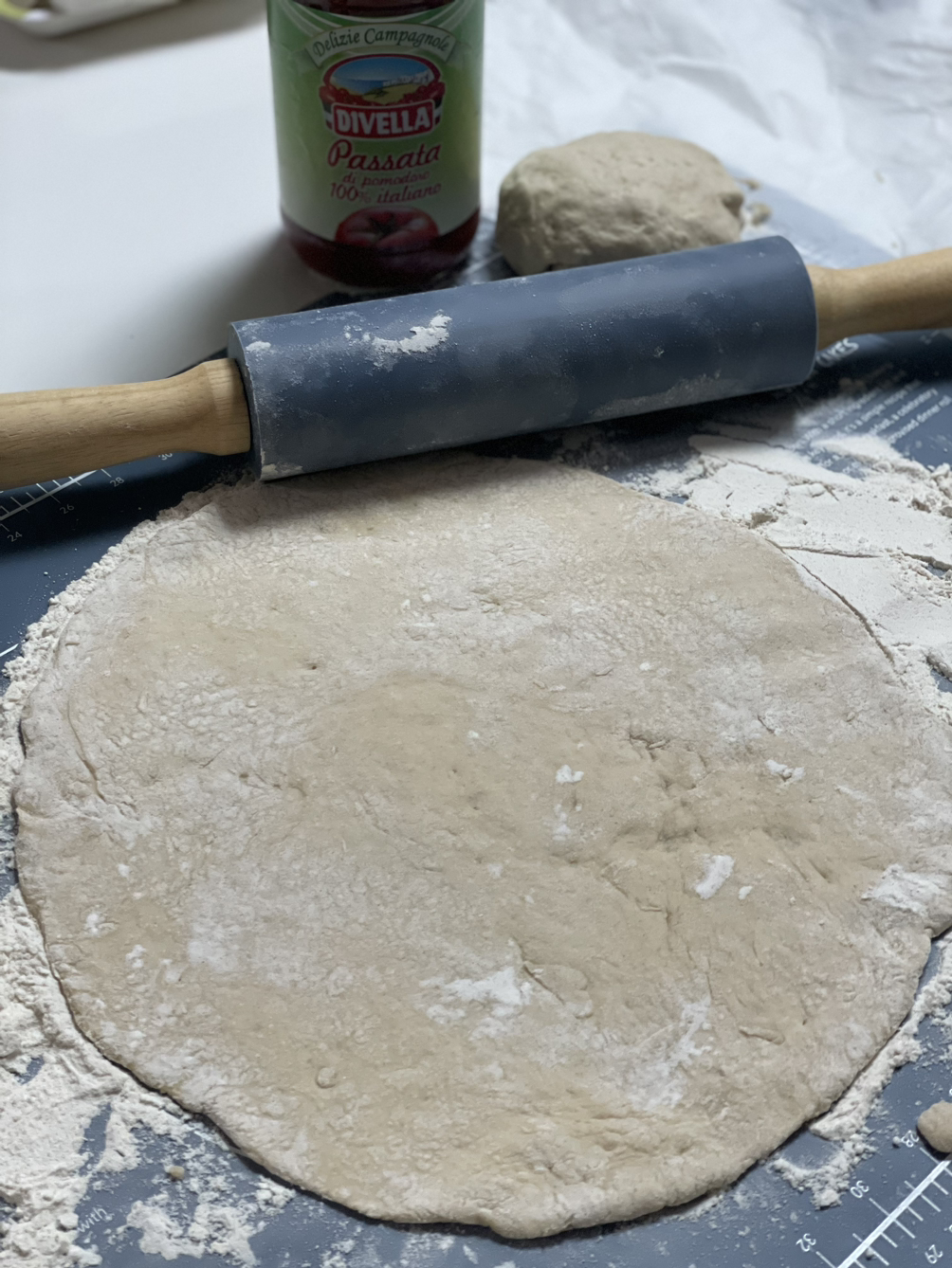 그렇게 아들은 이모랑 둘이서 놀고, 남편은 방으로 들어가 하던 일을 계속했다. 홀로 남겨진 나는 반죽을 하고, 물주머니에 뜨거운 물을 담아 반죽을 발효시켰다. 한 시간 뒤에, 여전히 홀로 반죽을 밀고 토마토와 치즈를 잘라 다른 재료와 함께 토핑 준비를 했다.