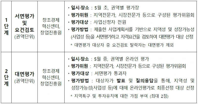 (서면 ,대면 평가 5월, 최종 선정공지 6월 )
