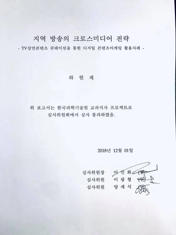 2년 전 카이스트 과학저널리즘 대학원 석사과정에서 발표한<지역방송의 크로스미디어 전략-강연 콘텐츠 마케팅 사례> 논문이 모티브가 되었던 모양이다.