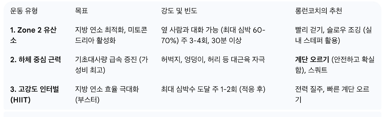 특히 '계단 오르기'는 전문가 도움 없이 하체 근력과 심폐지구력을 동시에 잡는 최고의 40대 다이어트 맞춤 운동입니다. 칼로리 소모가 아니라 '몸의 시스템'을 바꾸는 데 집중하세요.