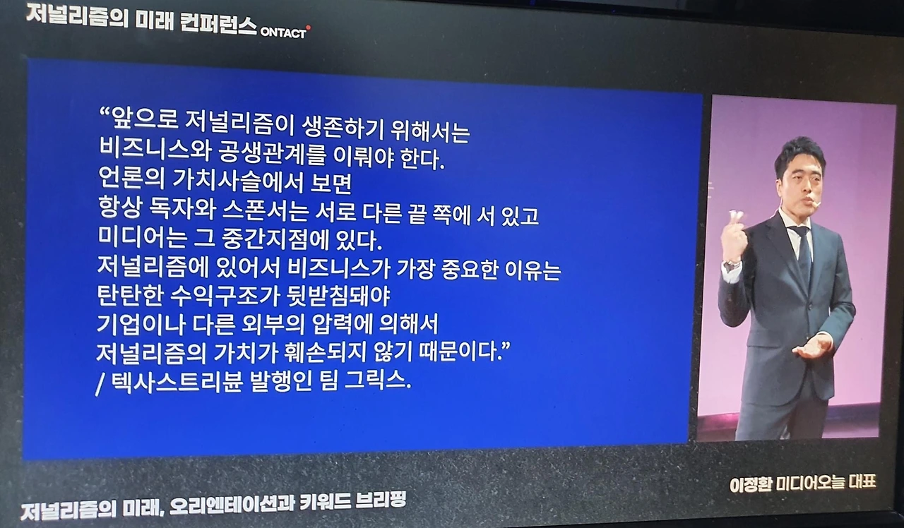 이 컨퍼런스를 기획한 미디어오늘 이정환 대표는 카이스트 대학원에서부터 인사이트가 남달랐다.