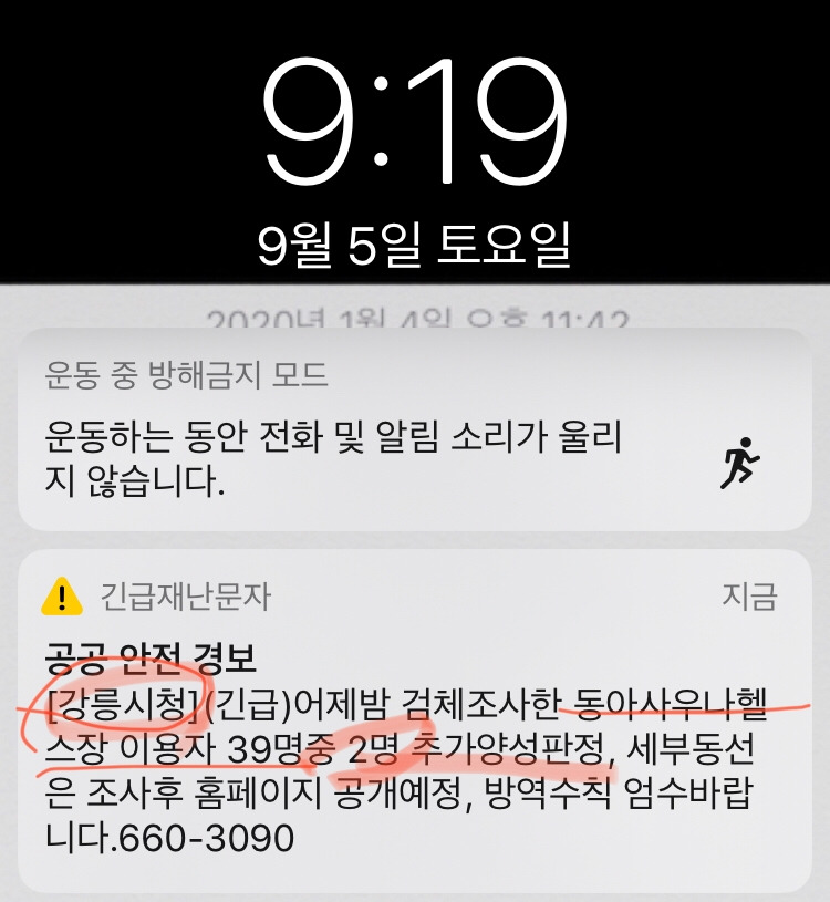 오늘 아침 청정지역 이곳 강릉도 태풍처럼 코로나를 비켜가진 못했다.ㅠㅠ