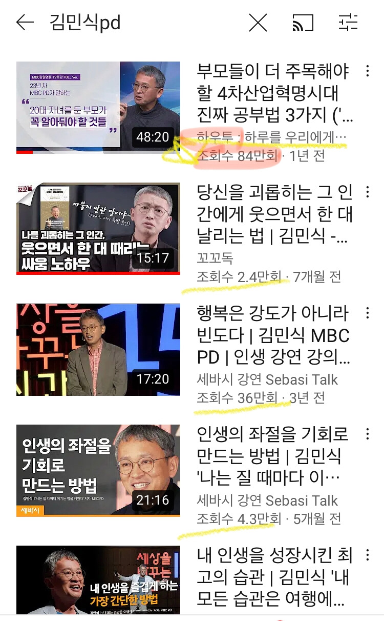 #하우투 채널에서 #김민식피디 강연콘텐츠가 #세바시, #김미경TV 파워 채널보다 조회수 2-3배를 능가한 80만 건 이상을 기록했다!!