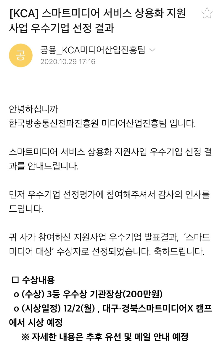 #청춘스마트클라쓰 제작회의 마치고 강릉 내려가는길에 과기정통부 주최 스마트미디어 대상 <우수상> 수상 소식을 받았습니다!!