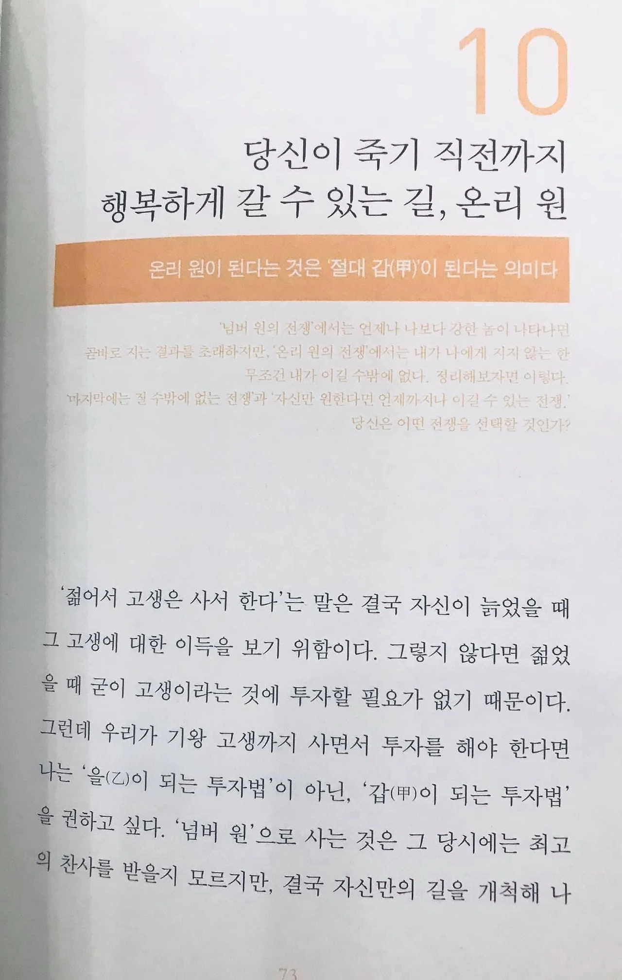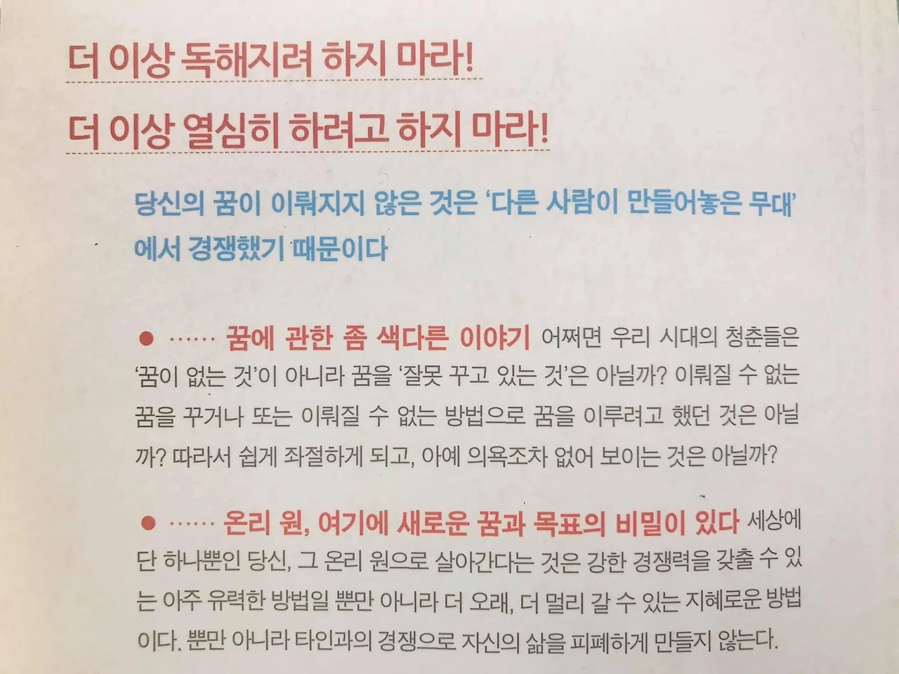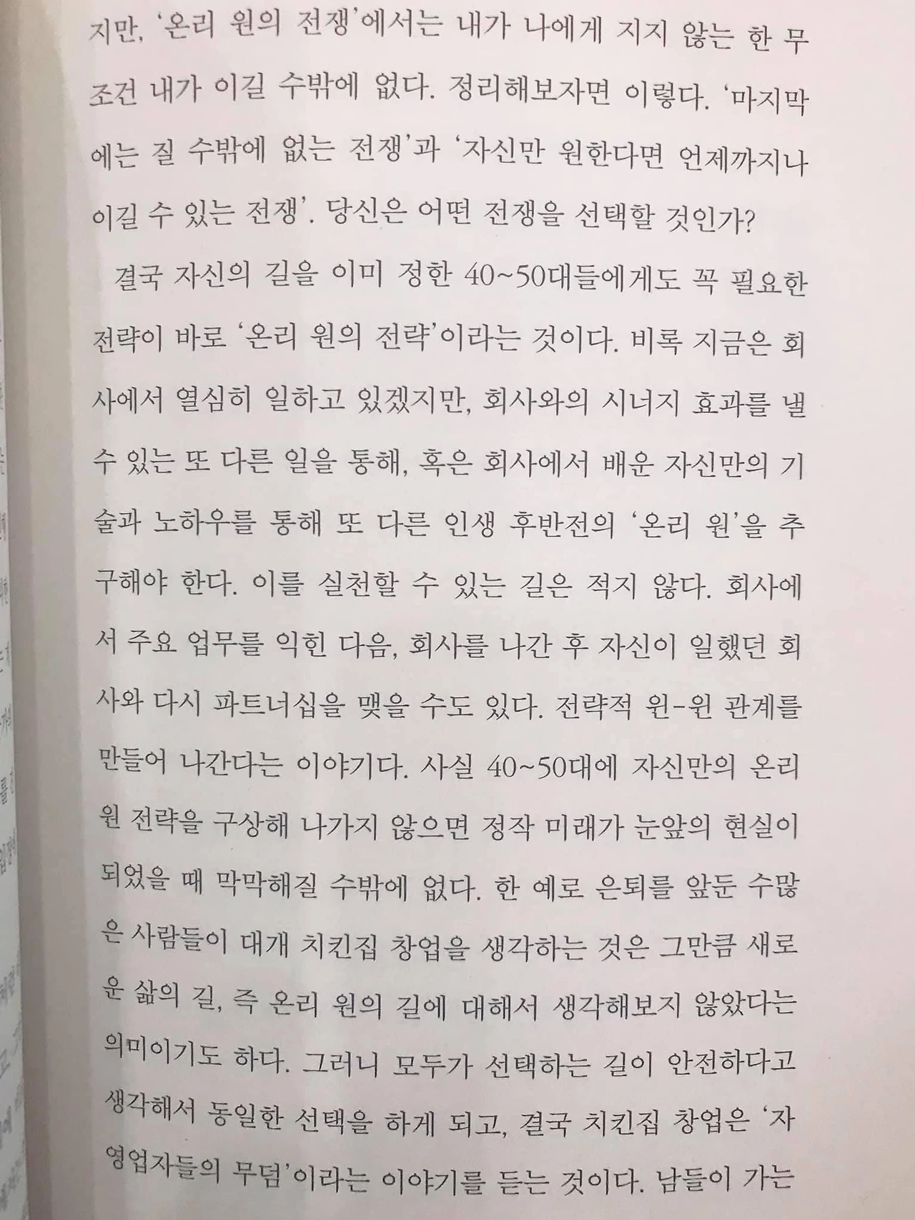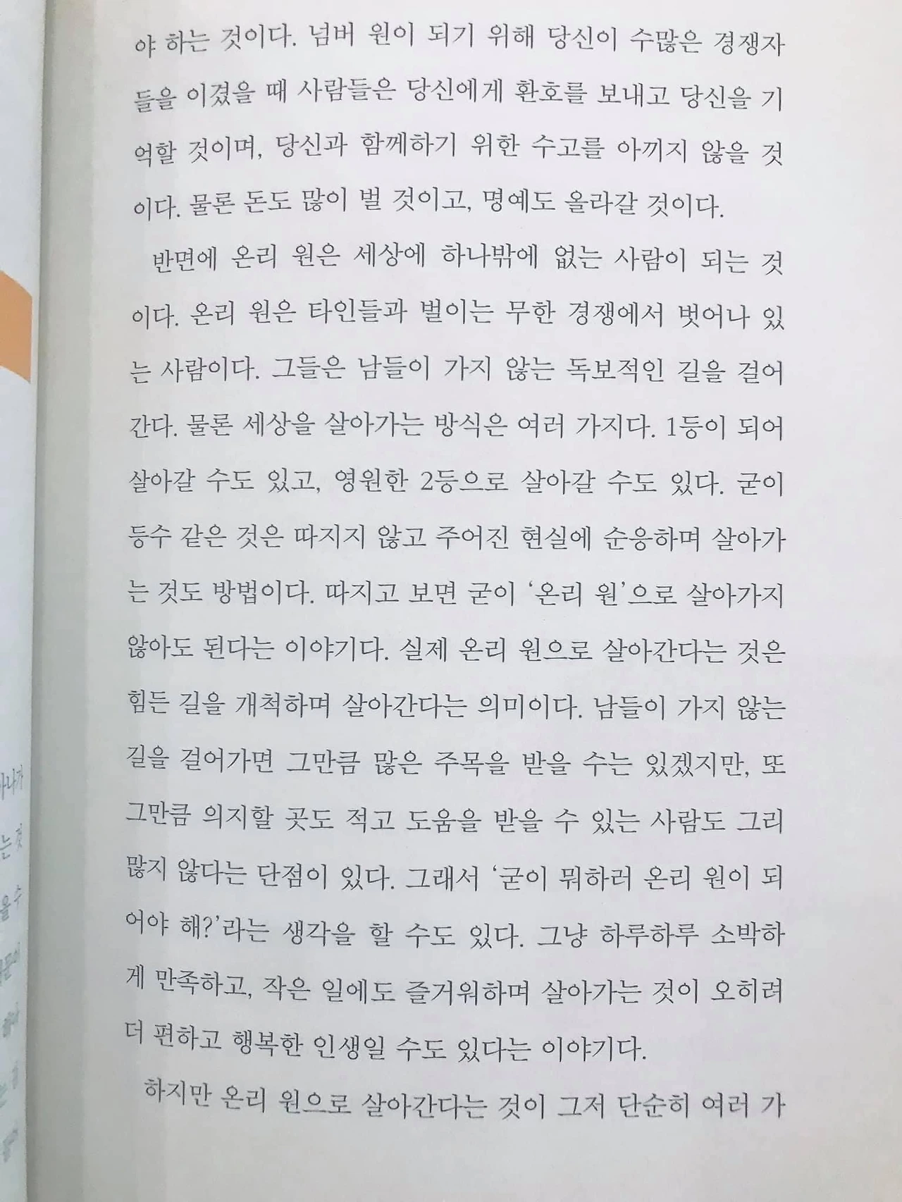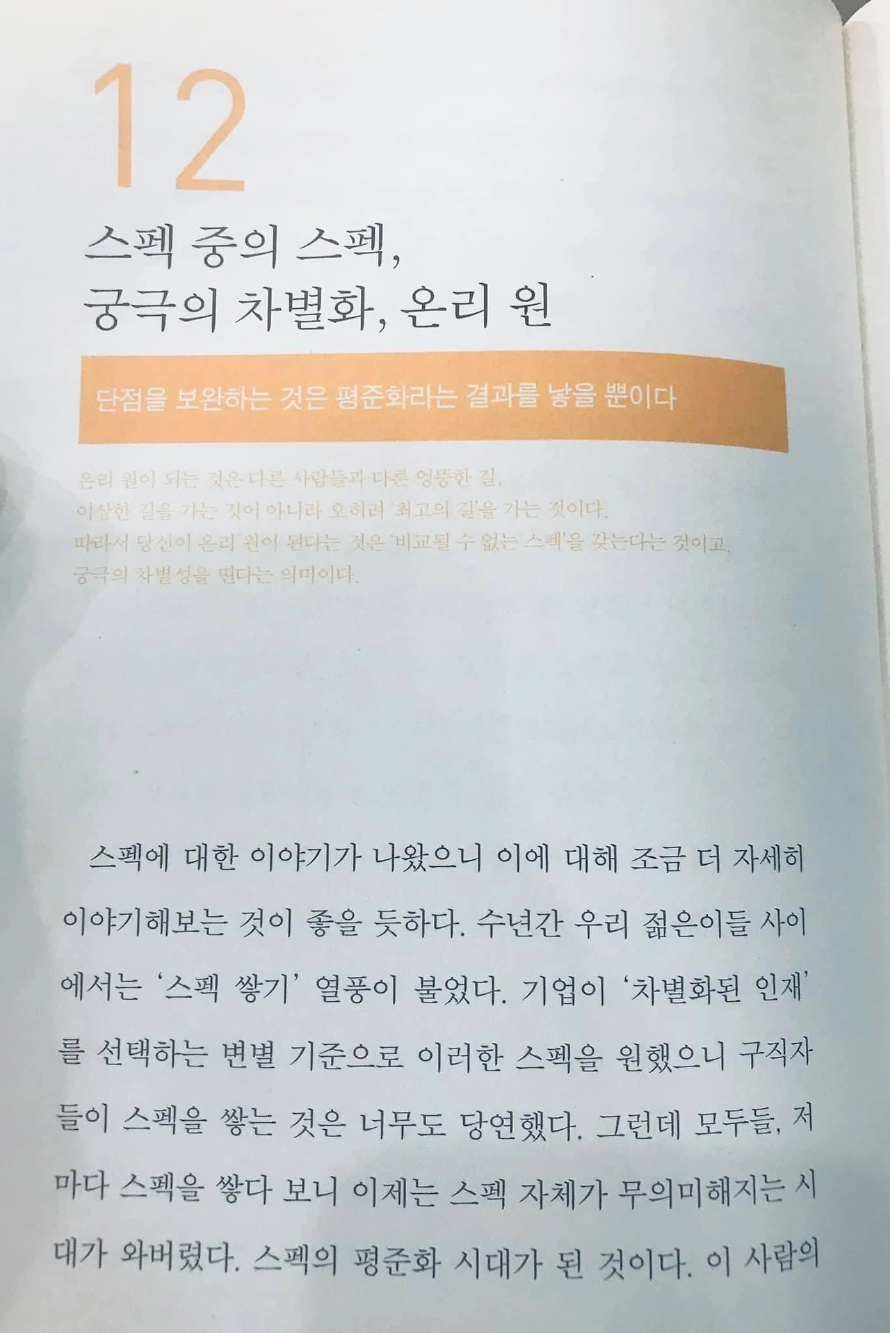 당시 기억으로는 TV 강연 프로그램을 어떻게 모바일 플랫폼으로 확장시킬까..? 고민하다 “온리원” 이란 단어가 눈에 들어와 책 한 권을 집어 들었다.(오종철 개그맨은 MBC TV특강 출연자였다)