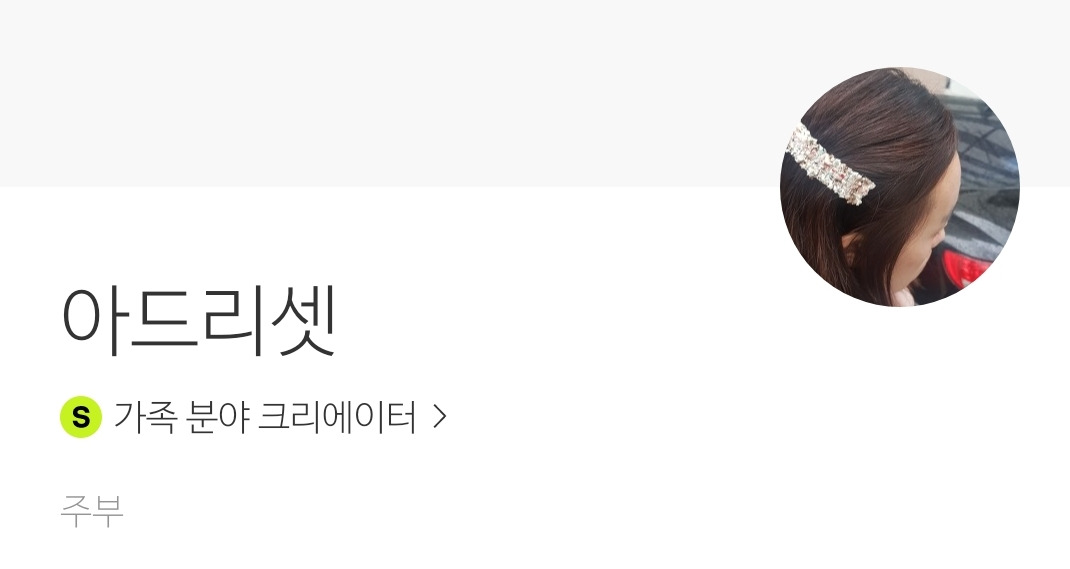 프로필 첫 화면 작가명 밑에 뜨는 연두색 배지.