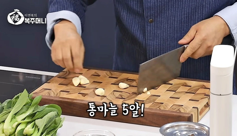 "엄마도 이연복 아저씨처럼 통마늘 칼로 탕 내리쳐서 다져 보지 그래."