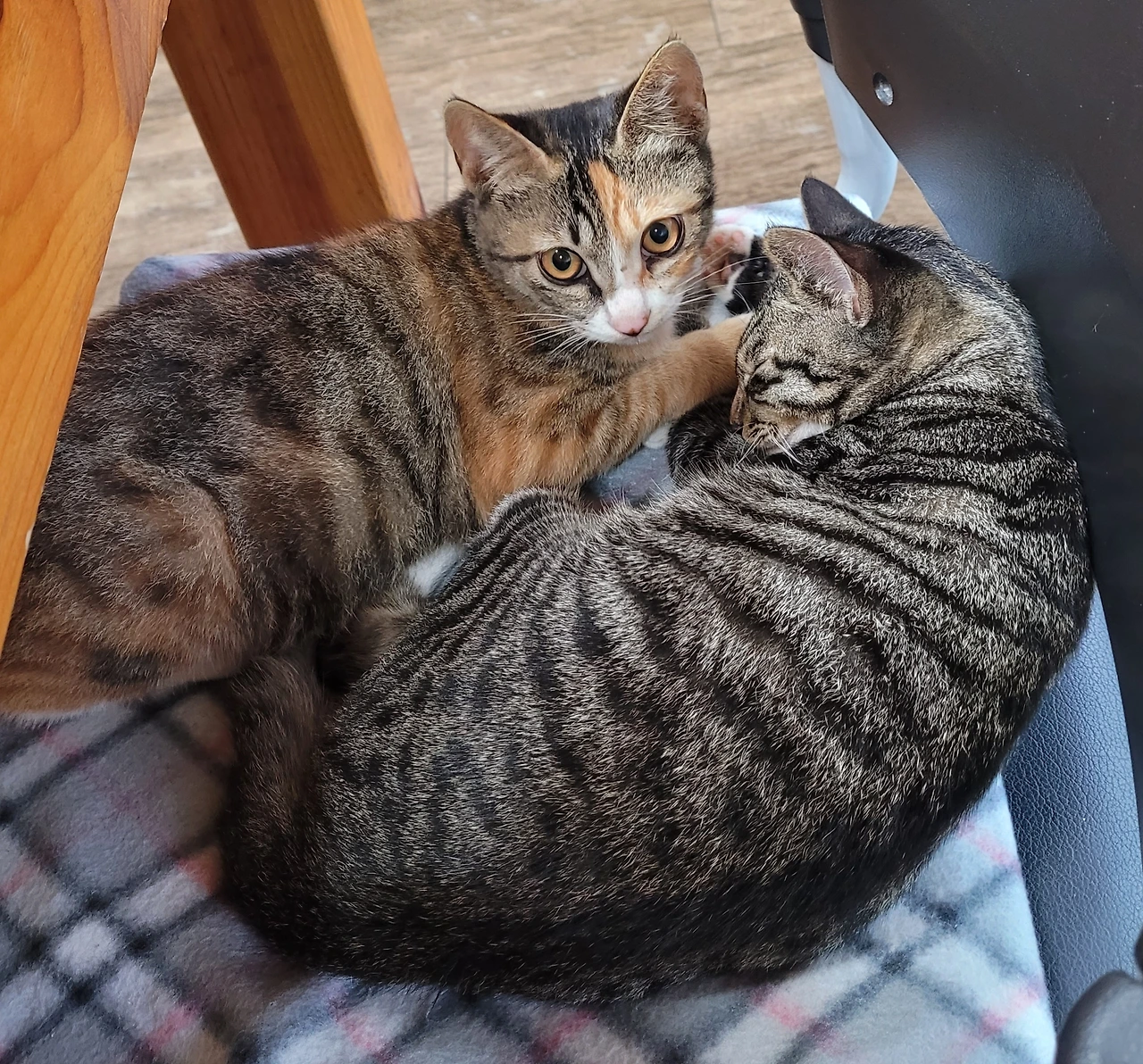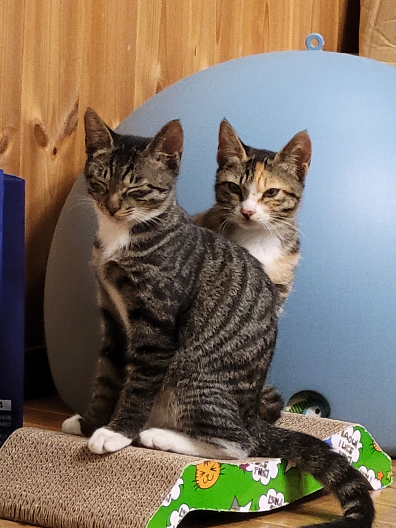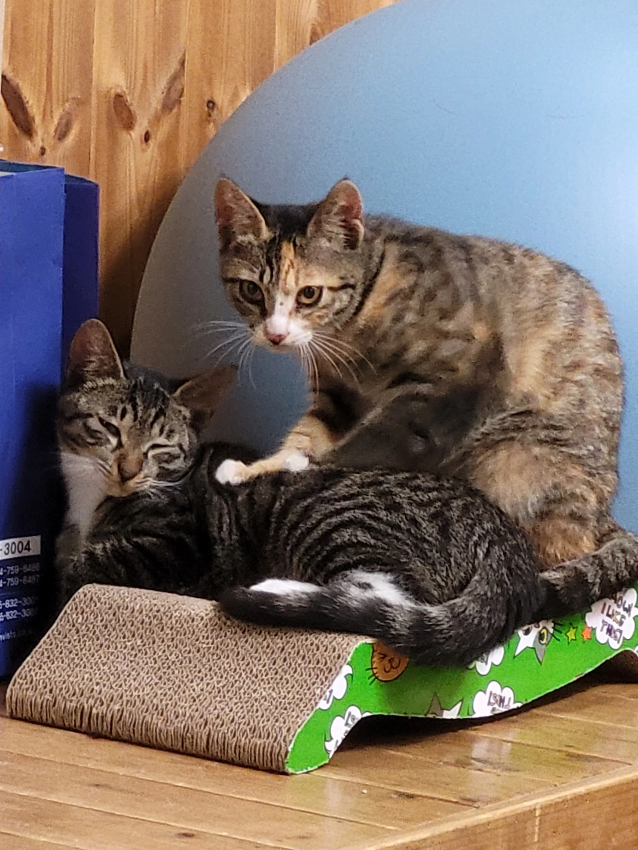 노란 냥이는 고등어 냥이 옆에 붙어 있었다.