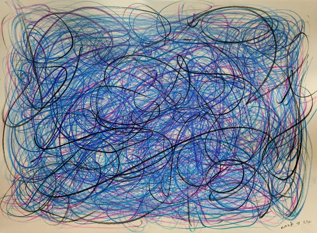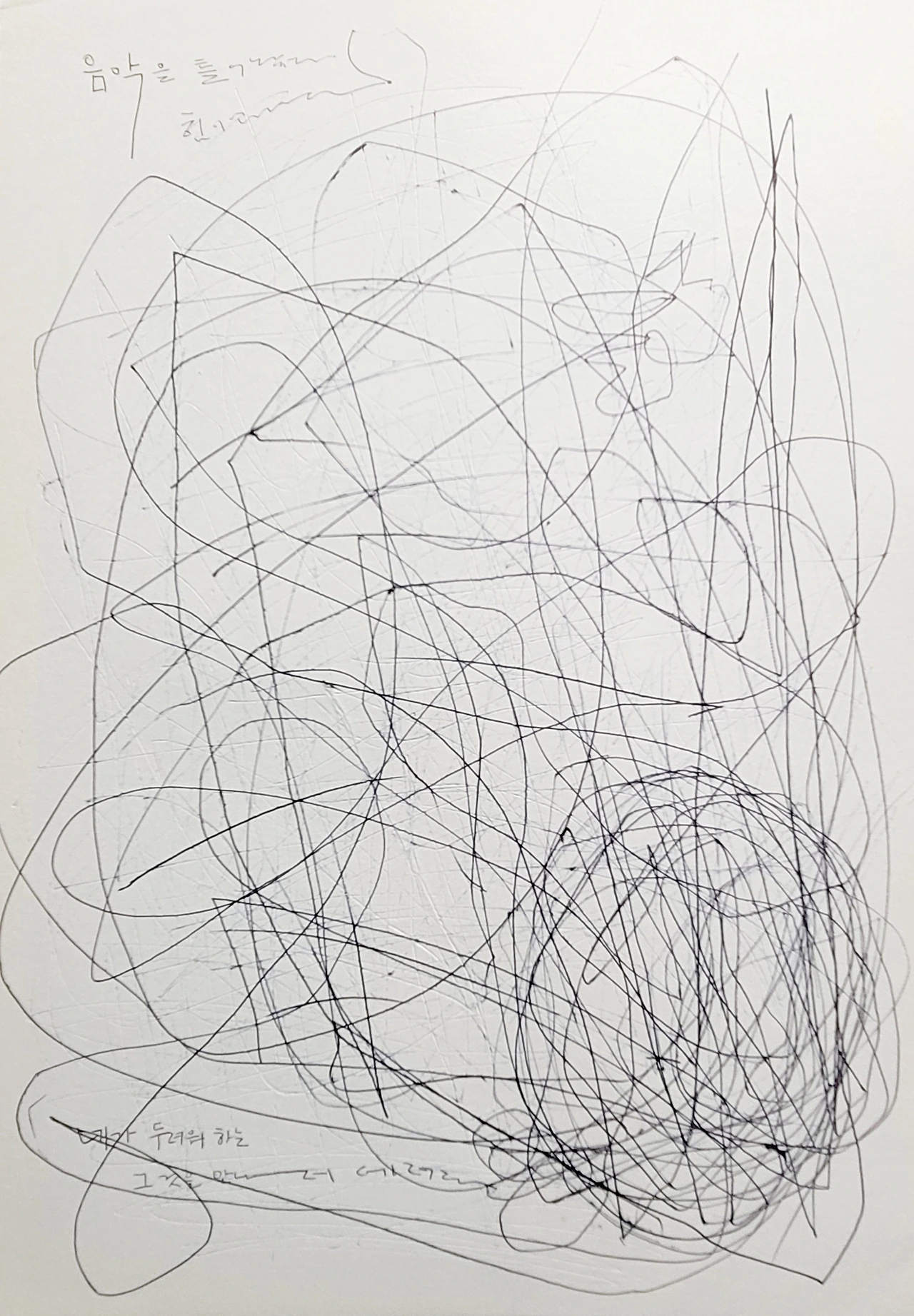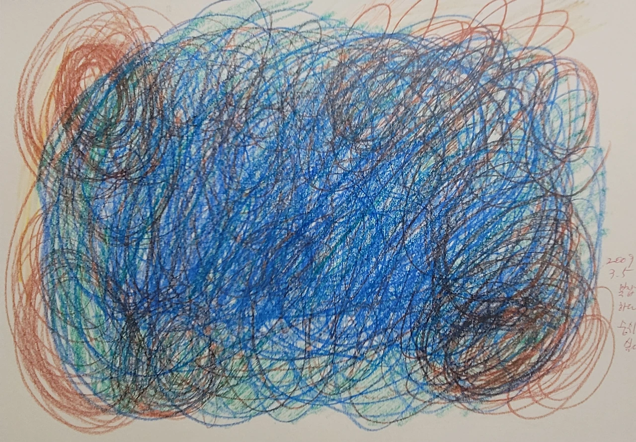 감정이 복잡하게 소용돌이칠 때, 하루에 한 번은 꼭 난화를 그렸다. 처음엔 투박하고 거칠었다. 정신없이 뒤엉킨 선들. 내 마음속만큼이나 엉망이었다. 감정 덩어리가 뭉친 날은 몇 시간이고 앉아서 북북 색칠하며 난화를 그렸다. 한참 동안 계속하다 보면 선이 달라졌다. 머릿속이 맑아졌다. 복잡했던 감정이 조금씩 흘러나오는 기분이었다.