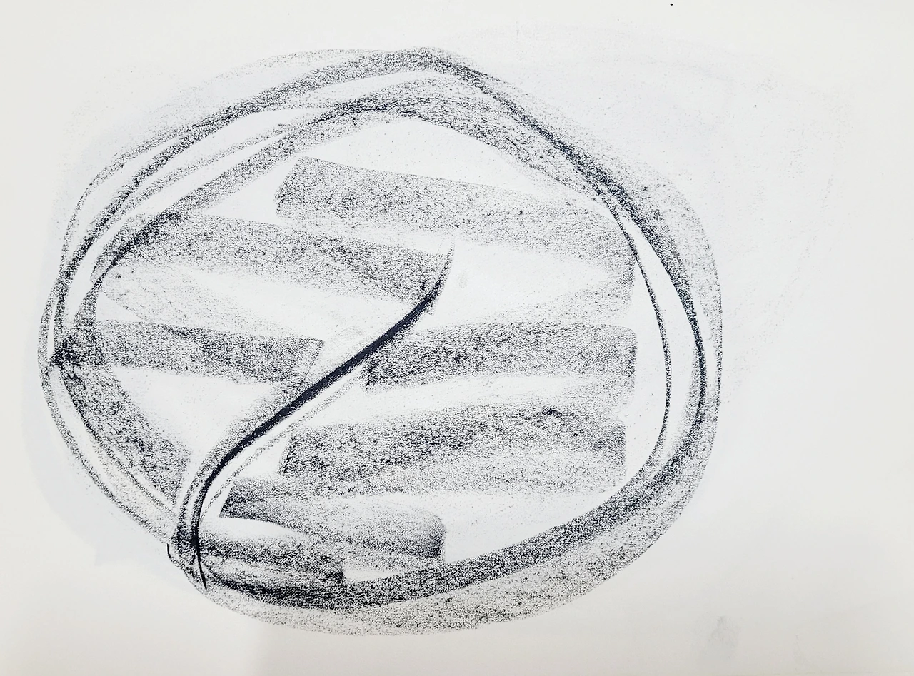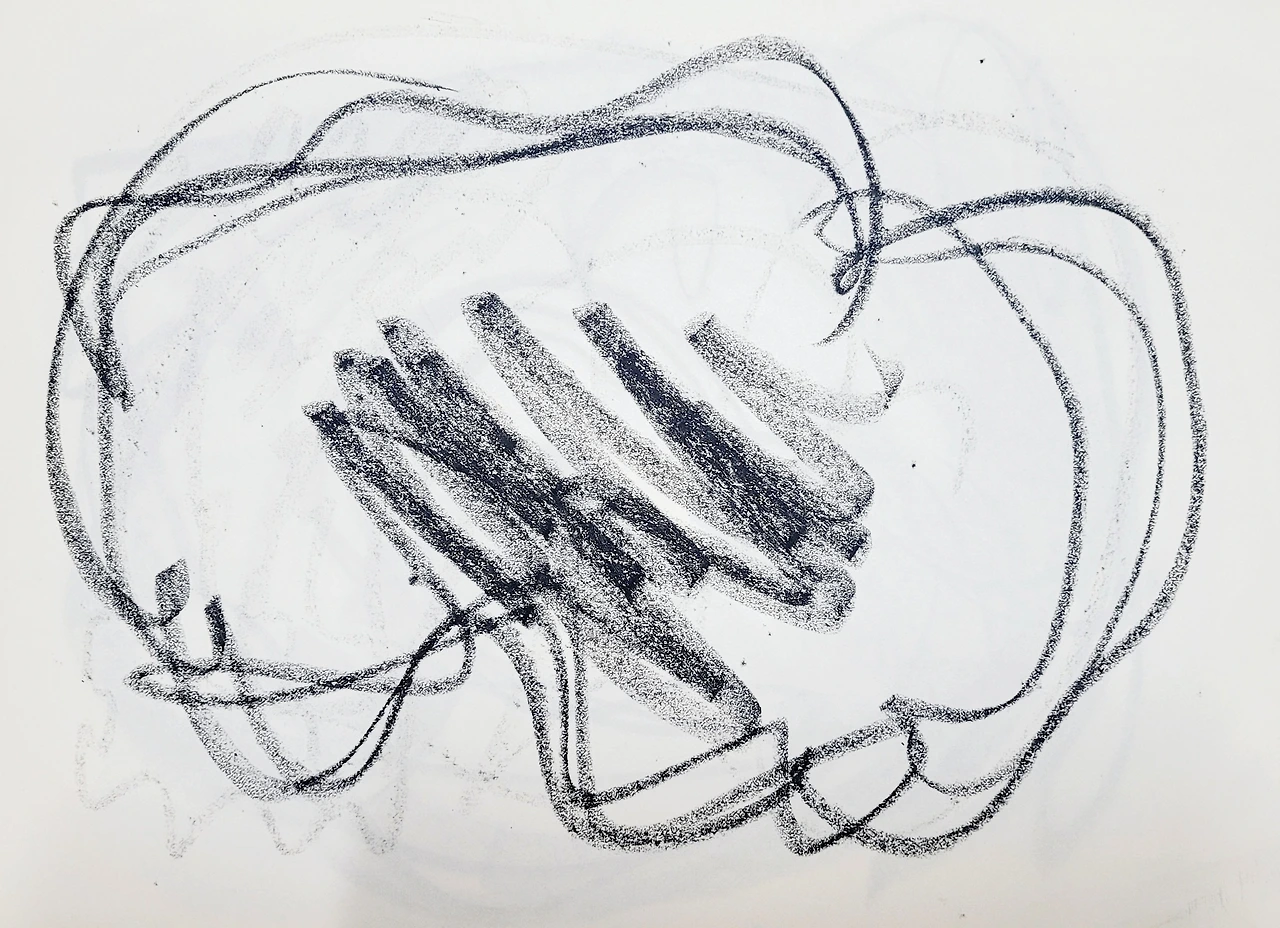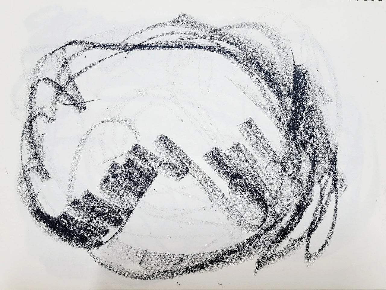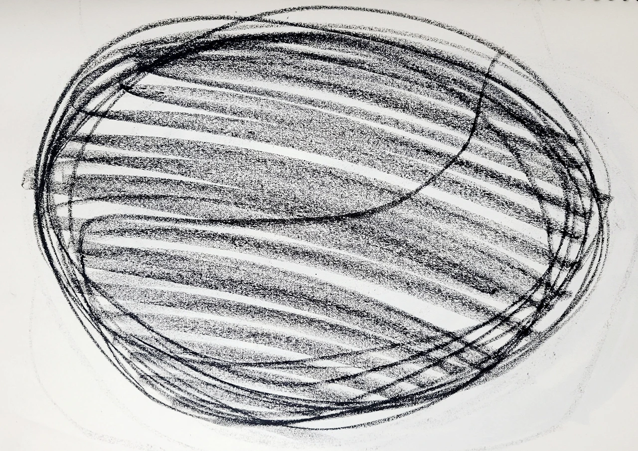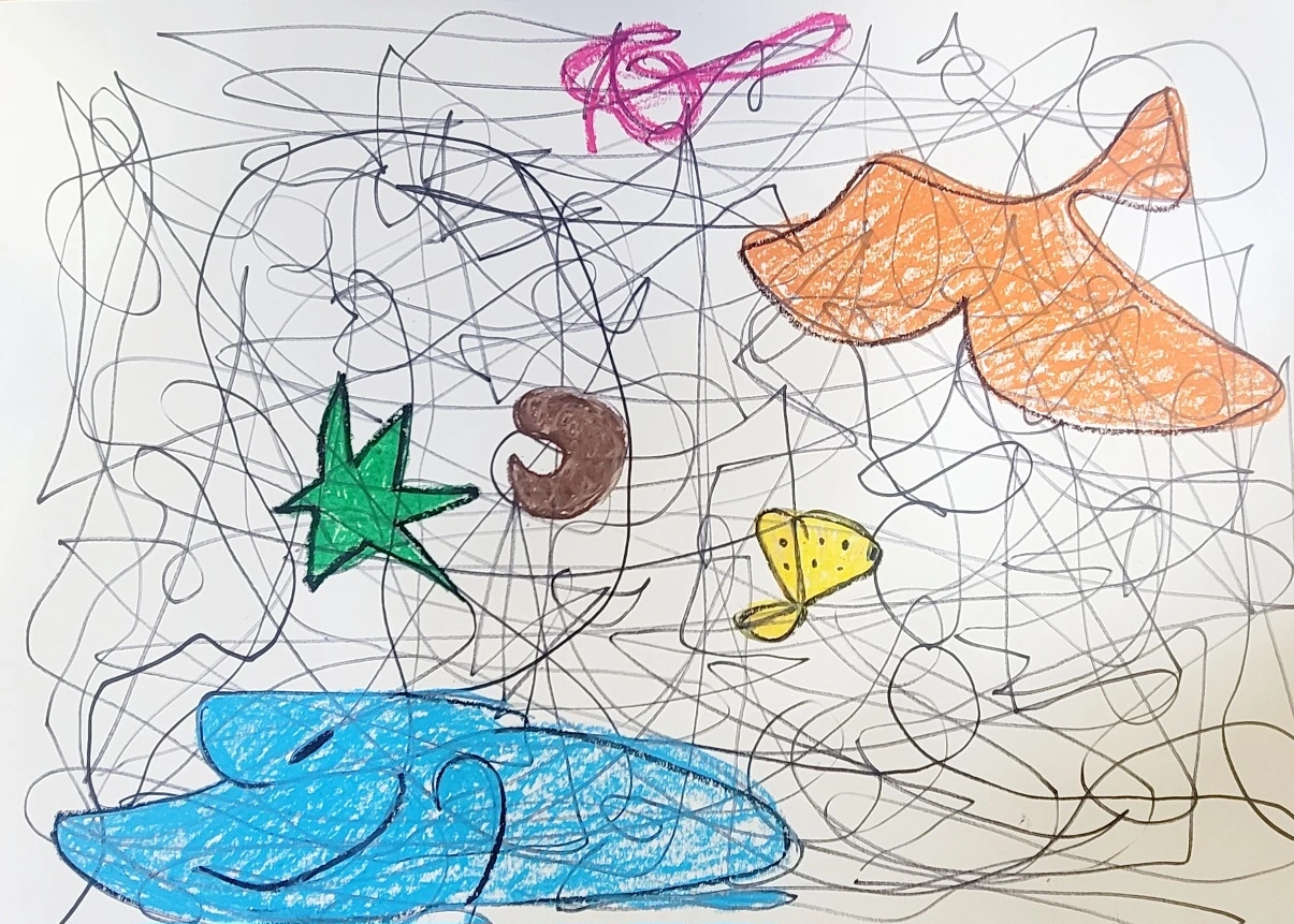 무엇을 그리겠다는 목적 없이 자유롭게 그리는 자체가 즐거운 몰입이다. 내가 그랬다. 속도감을 느끼며 빠른 속도로 그렸다. 크레파스 한 색깔이 다 닳을 때까지 팔이 춤추듯이 움직이면 종이는 다 경청하고 있다고 흔적을 보여줬다. 멀리 날아갔던 감정은 난화를 그리는 동안 현재로 돌아와 달칵 소리를 내며 제자리에 앉는다.
