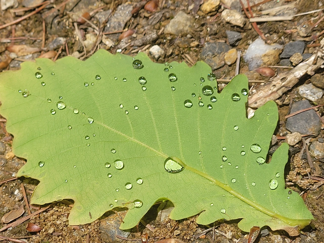 잎사귀에 투명한 물방울이 동글동글 맺혔다.
