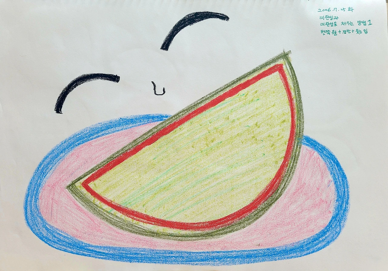 쟁반에 놓인 수박을 그리다가